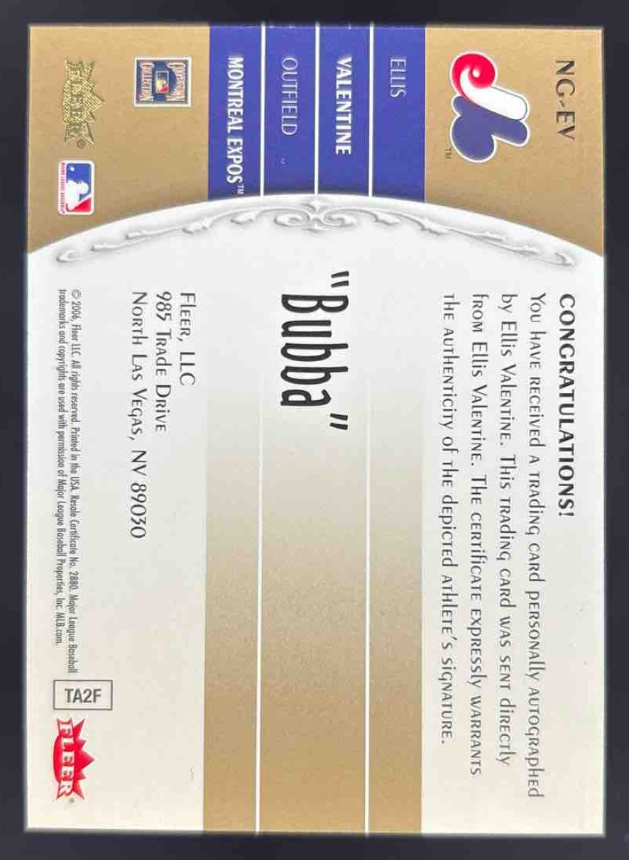 2006 Fleer Greats of the Game Nickname Greats Autographs Ellis Valentine Auto