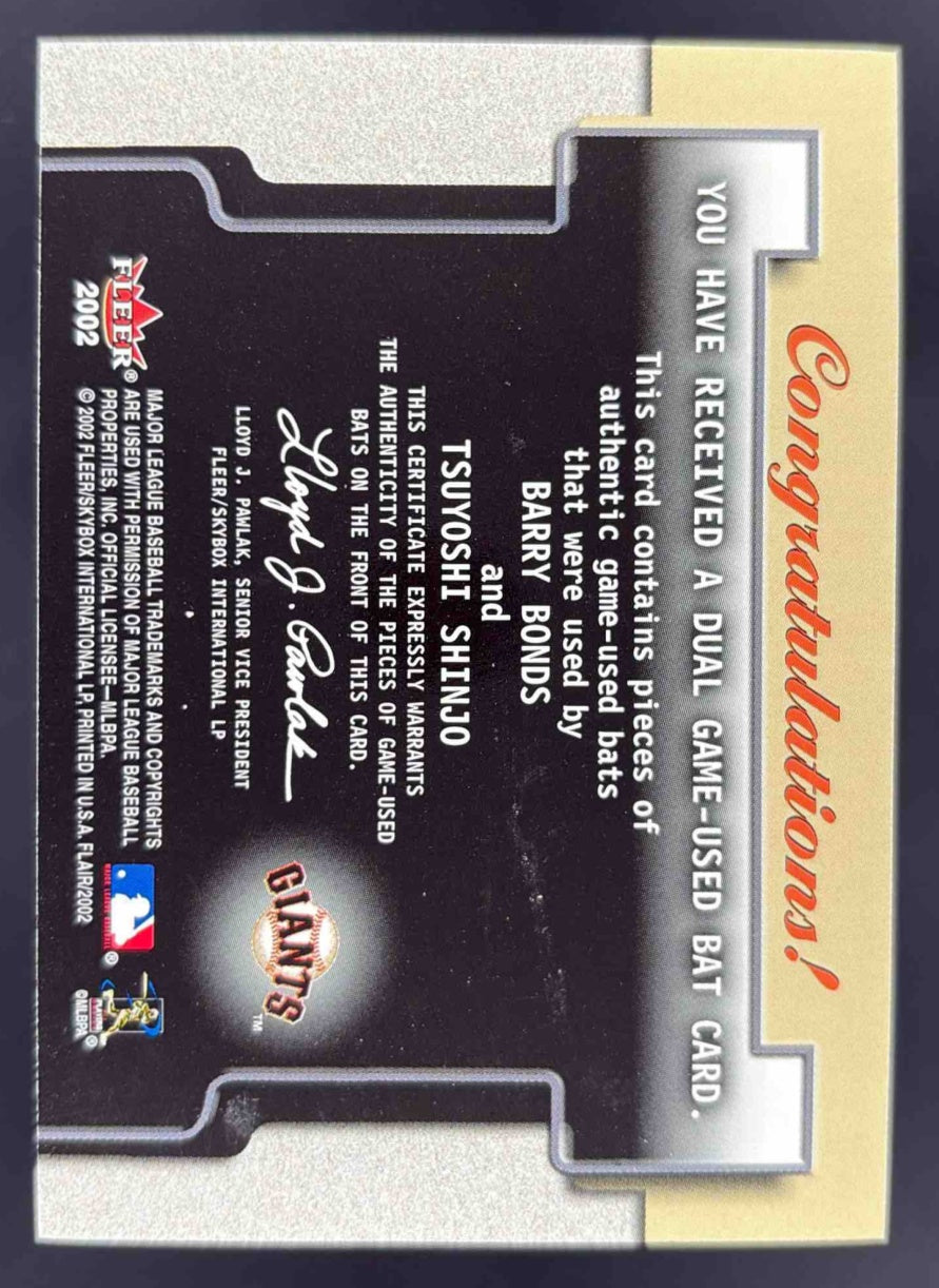2002 Fleer Flair Jersey Height Power Tools Dual Bats Barry Bonds Tsuyoshi Shinjo