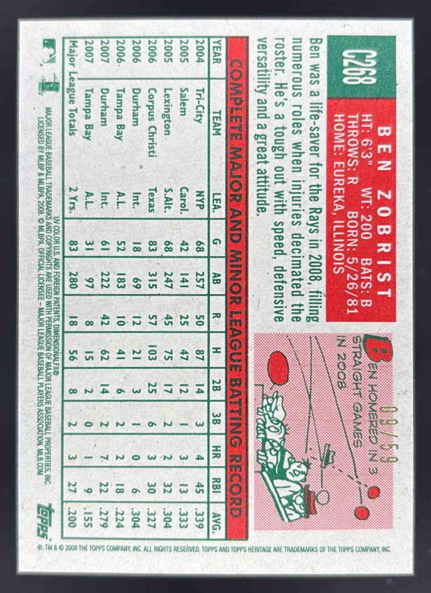 2008 Topps Heritage Chrome Refractors Black #C268 Ben Zobrist /59