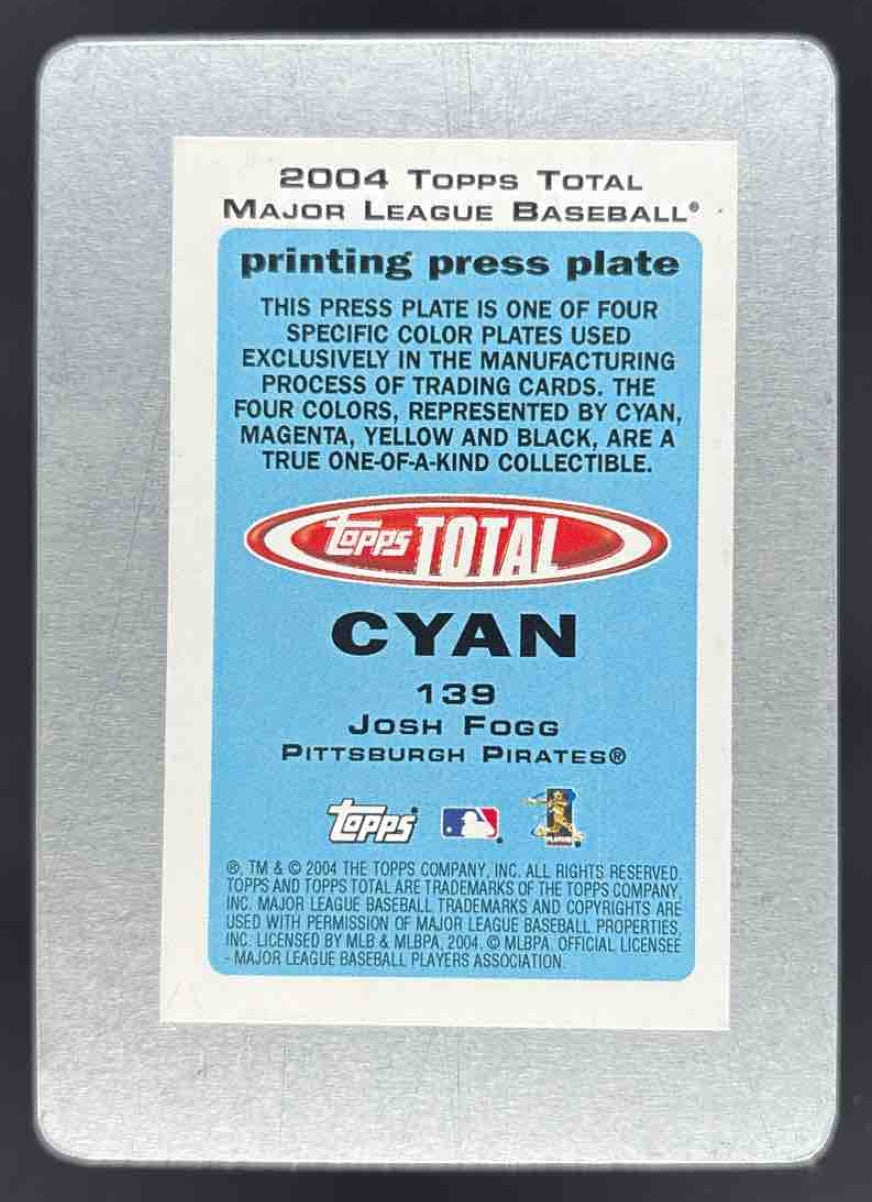 2004 Topps Total Press Plates Cyan #139 Josh Fogg 1/1