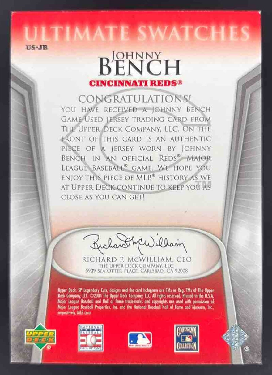 2004 SP Legendary Cuts Ultimate Swatches #US-JB Johnny Bench