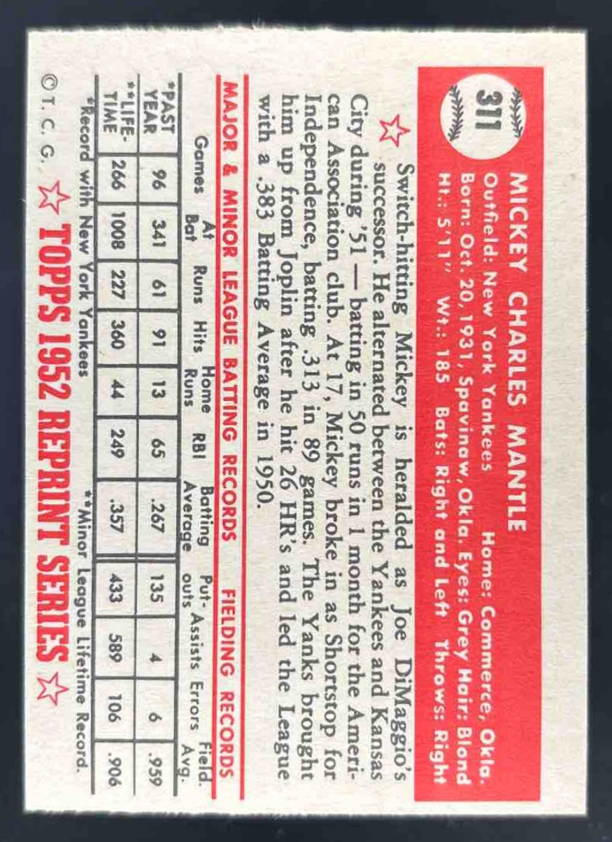 1983 Topps 1952 Reprint Series #311 Mickey Mantle