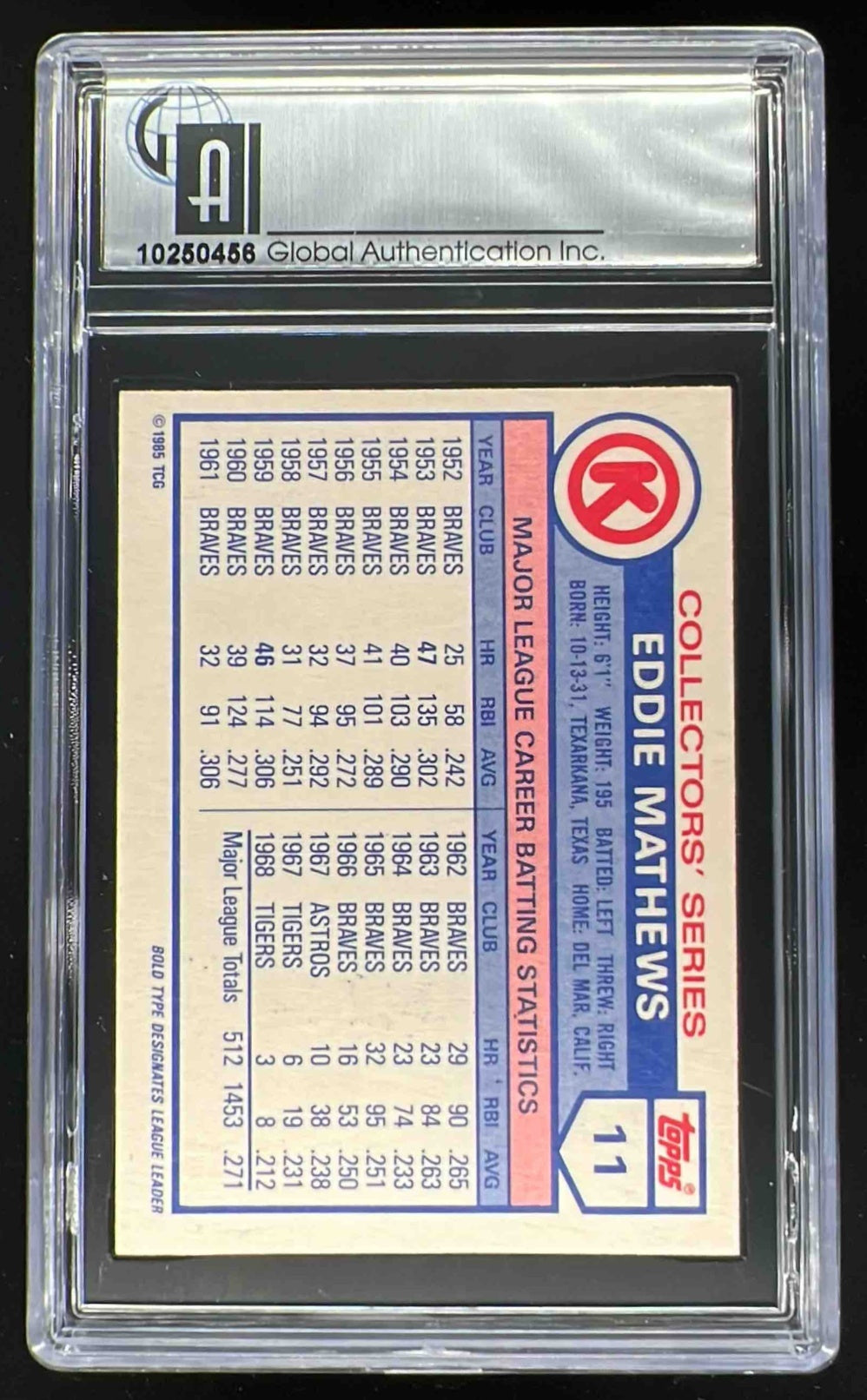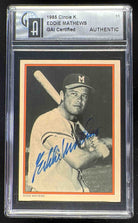 1985 Topps Circle K All Time Home Run Kings #11 Eddie Mathews Auto GAI Authentic