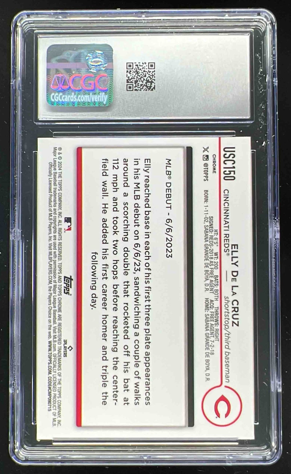 2024 Topps Chrome Update RayWave Refractor #USC150 Elly De La Cruz RC CGC 10
