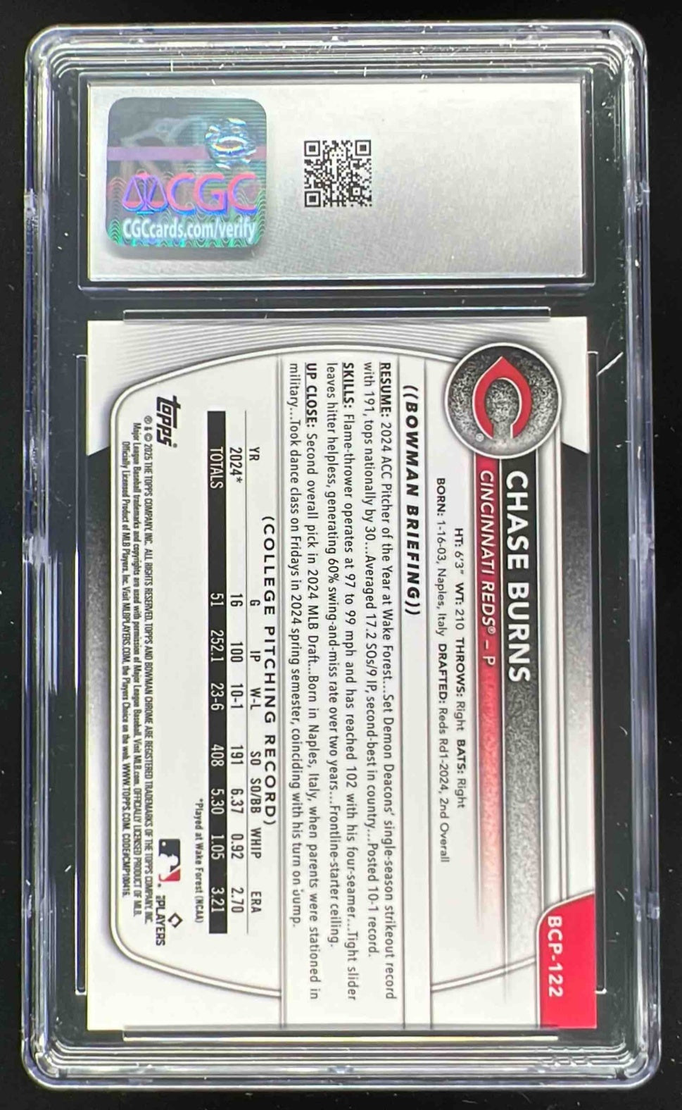 2025 Bowman Chrome Prospects Gold Shimmer Refractor #122 Chase Burns /50 CGC 10