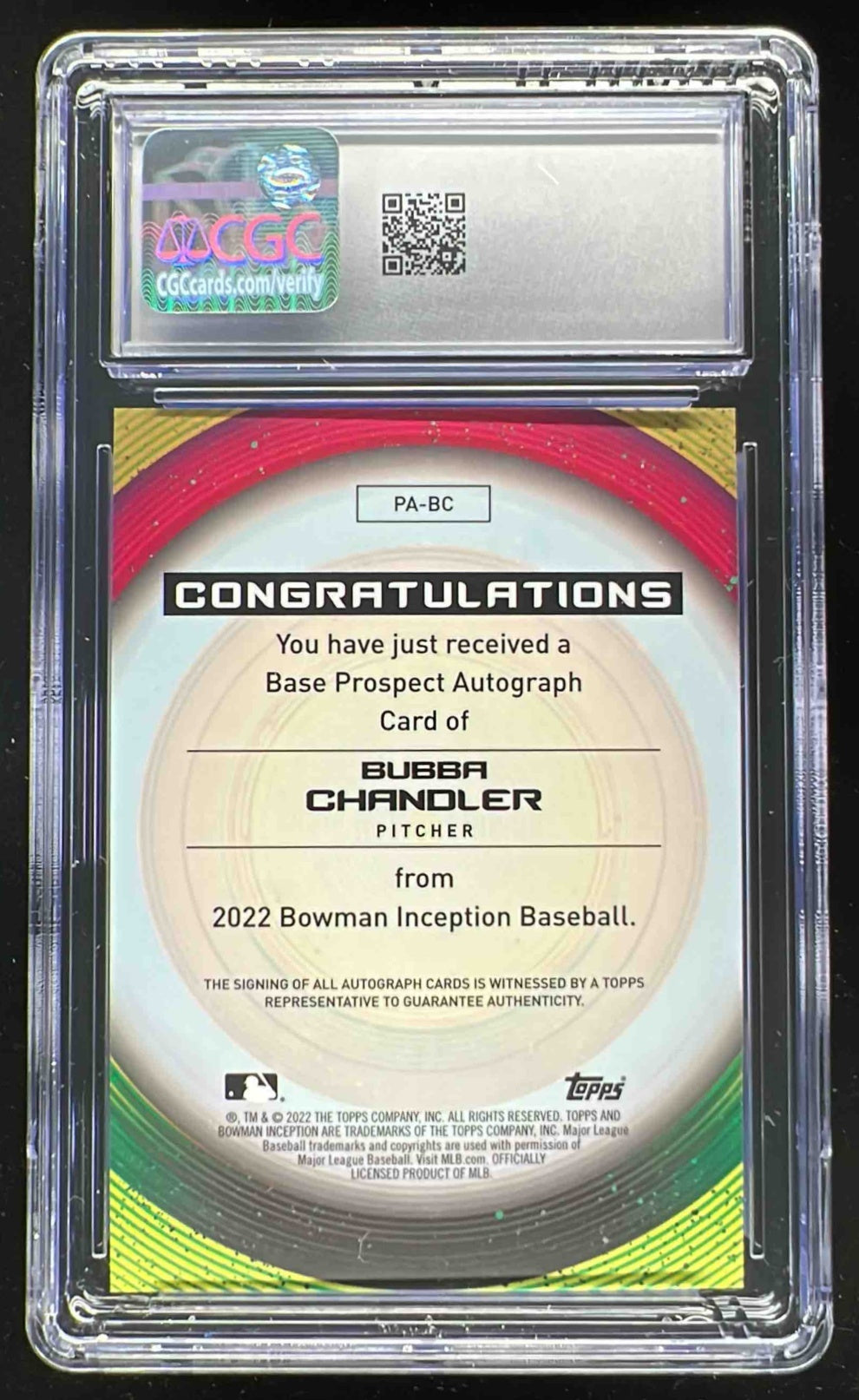 2022 Bowman Inception Prospect Blue Foil #PA-BC Bubba Chandler Auto /99 CGC 10