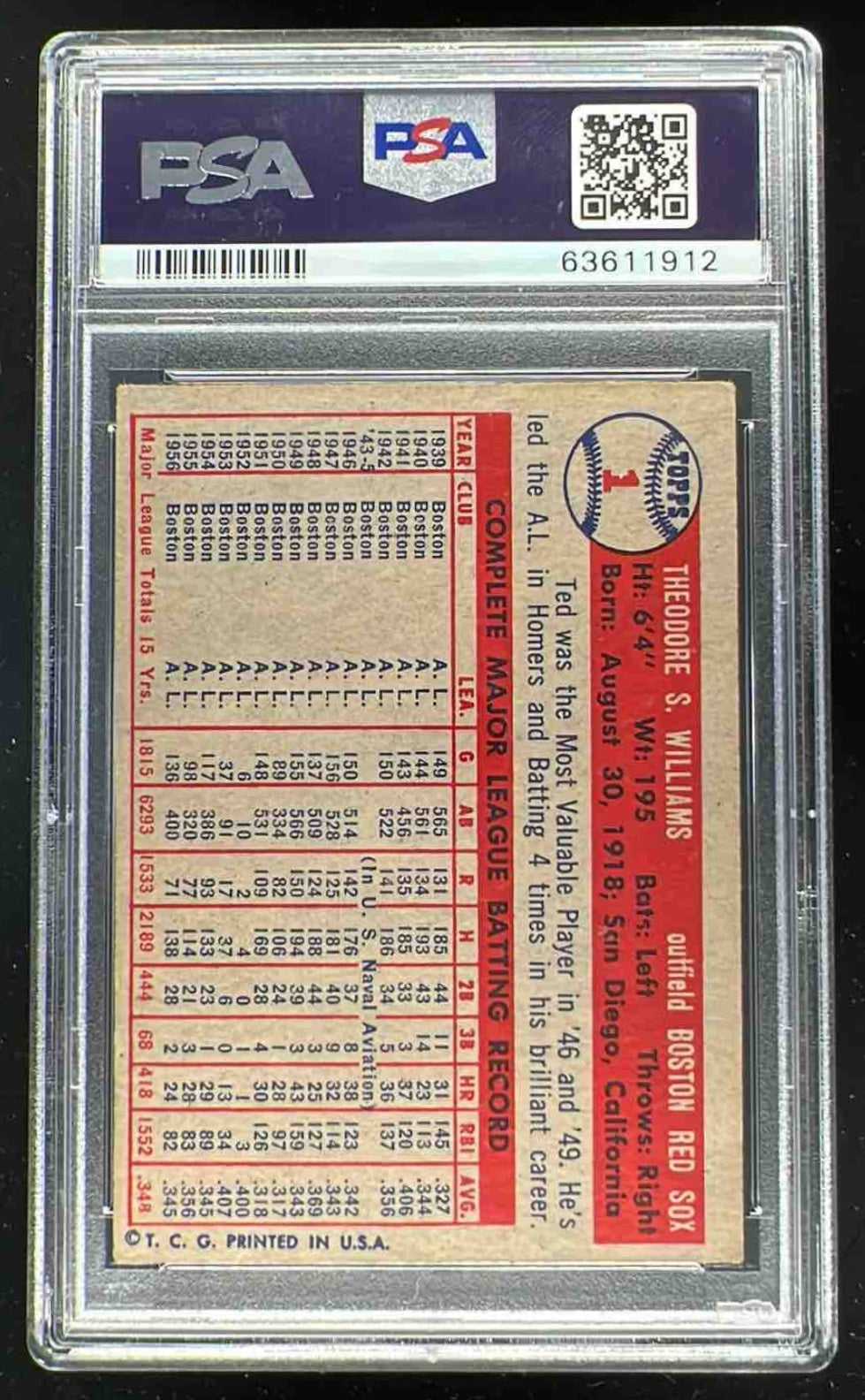 1957 Topps #1 Ted Williams PSA 3.5