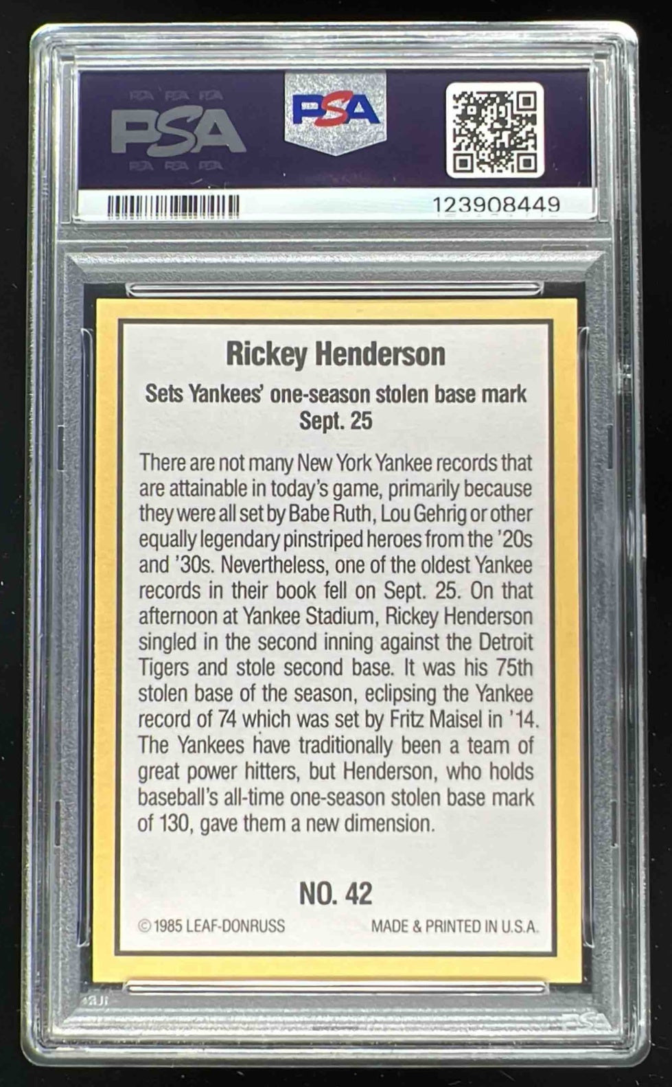 1985 Donruss Highlights #42 Rickey Henderson PSA 8