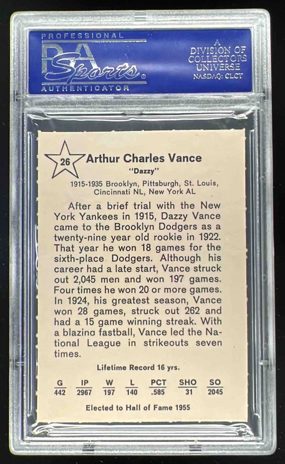 1961 Golden Press #26 Dazzy Vance PSA 9