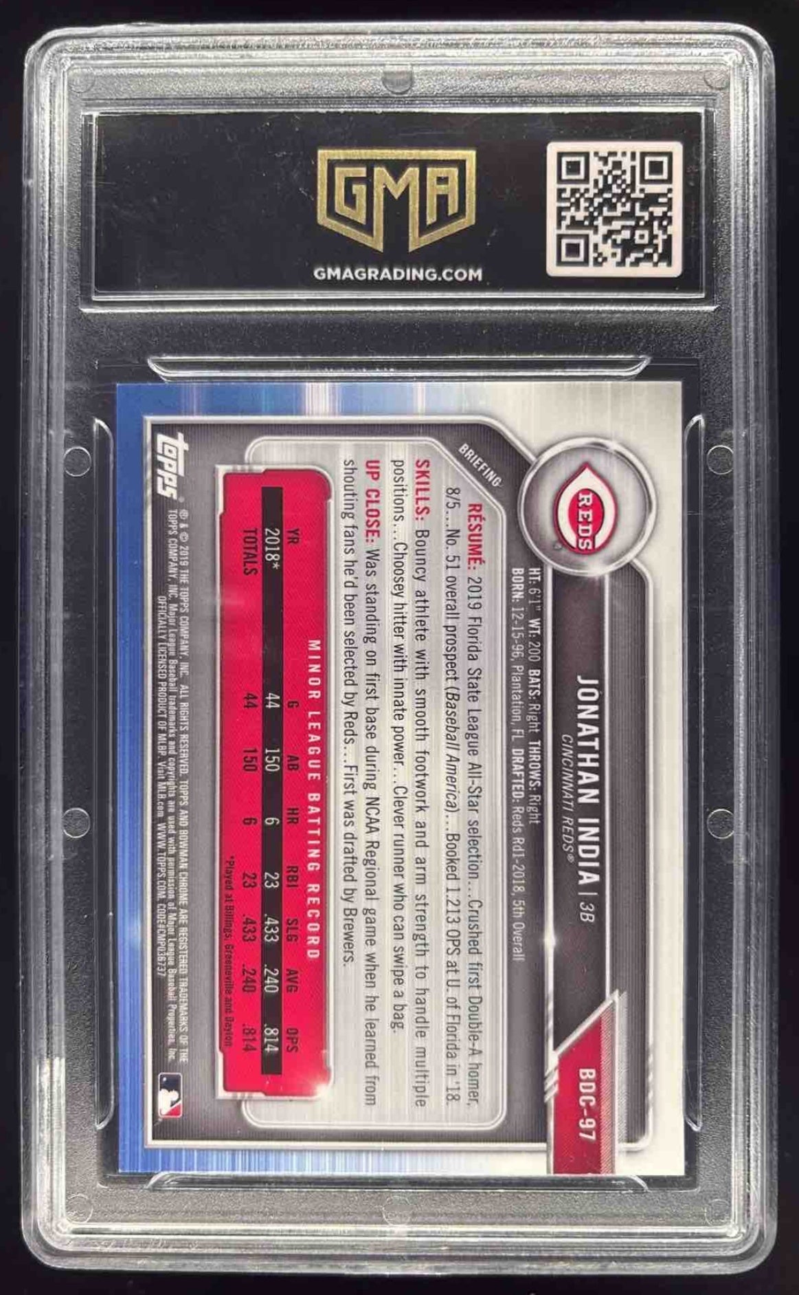 2019 Bowman Draft Chrome Sky Blue Refractor #BDC-97 Jonathan India GMA 10