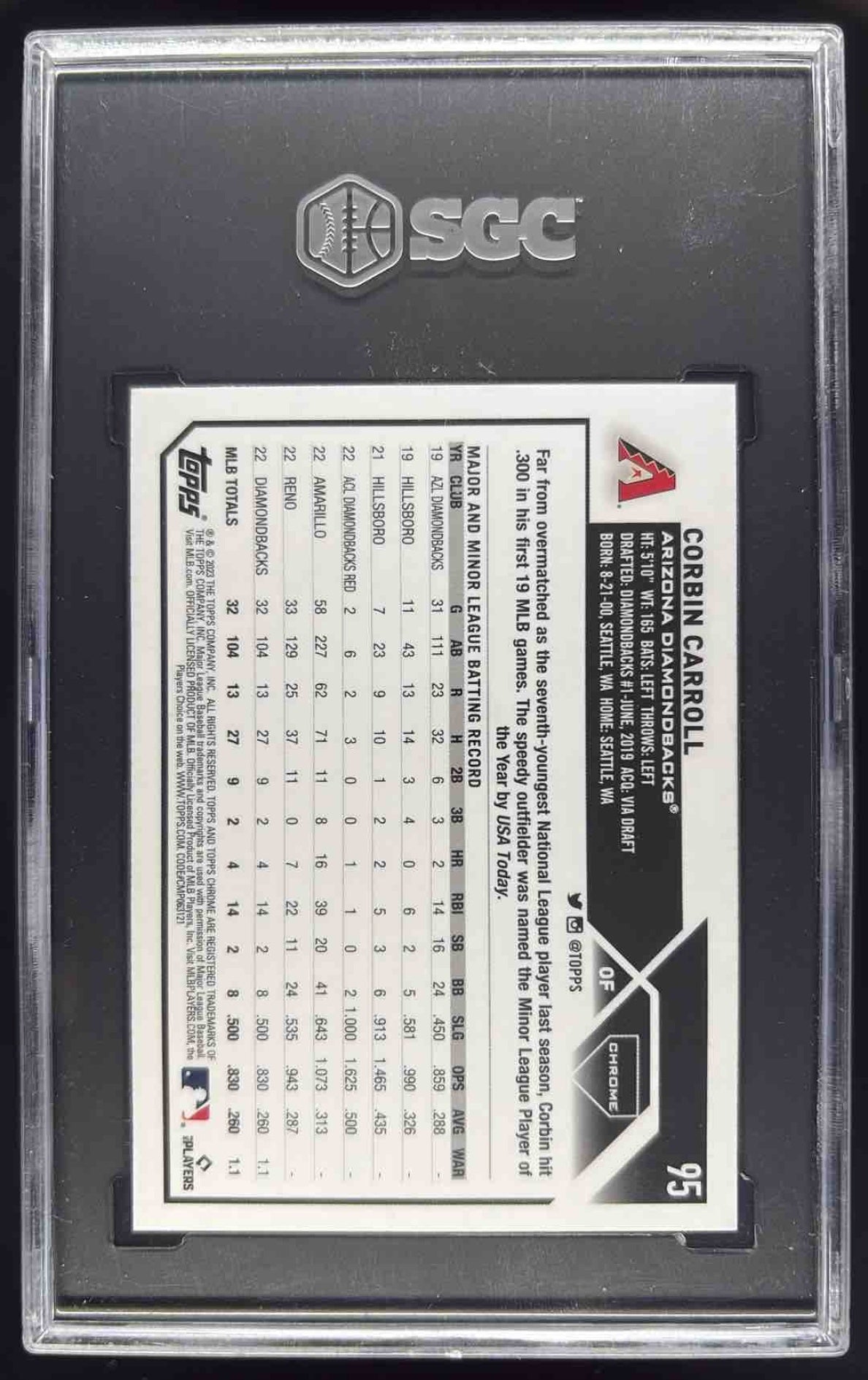 2023 Topps Chrome Pink Refractor #95 Corbin Carroll RC SGC 9.5