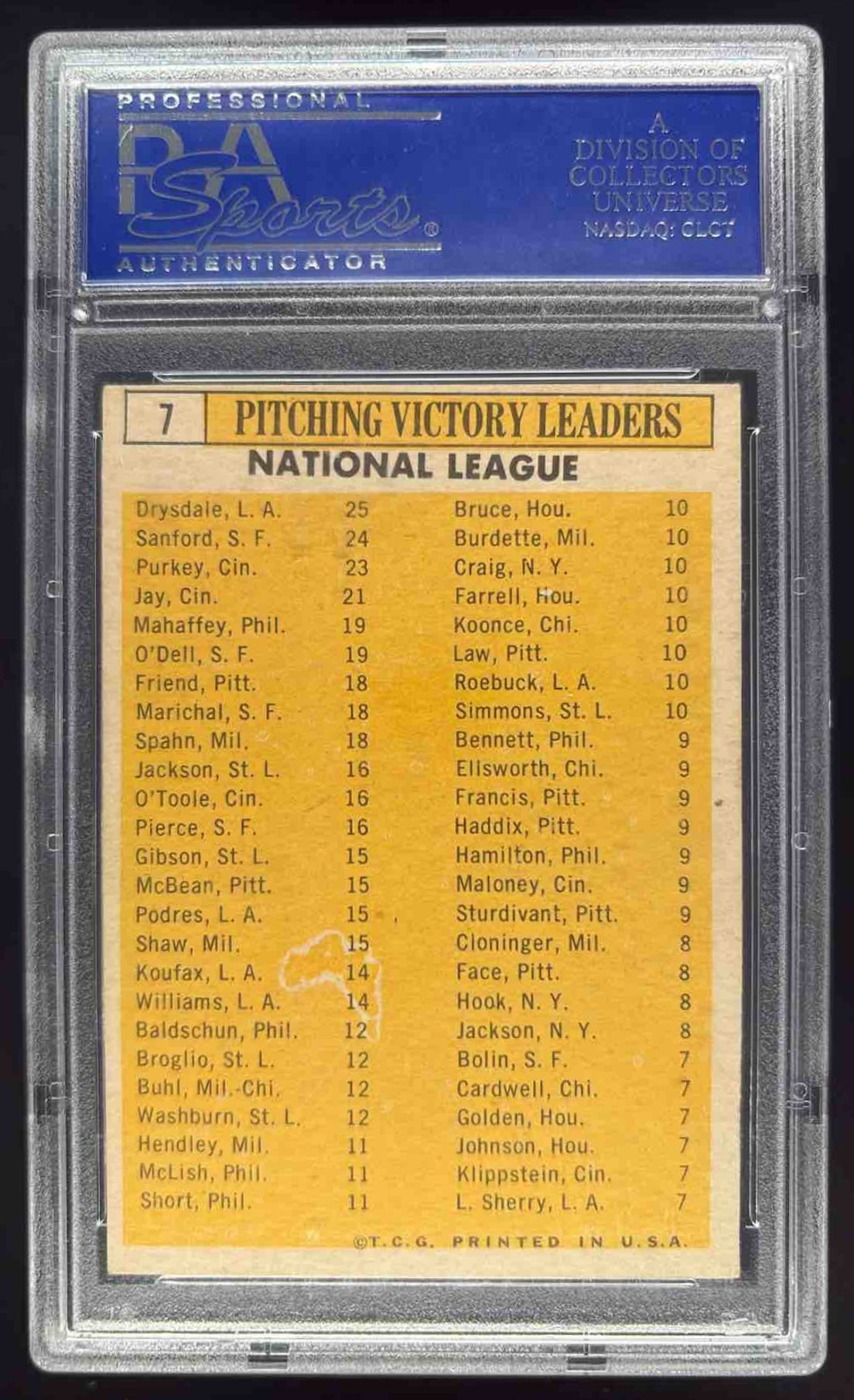 1963 Topps #7 Don Drysdale Jack Sanford Purkey Jay Mahaffey O'Dell PSA 5