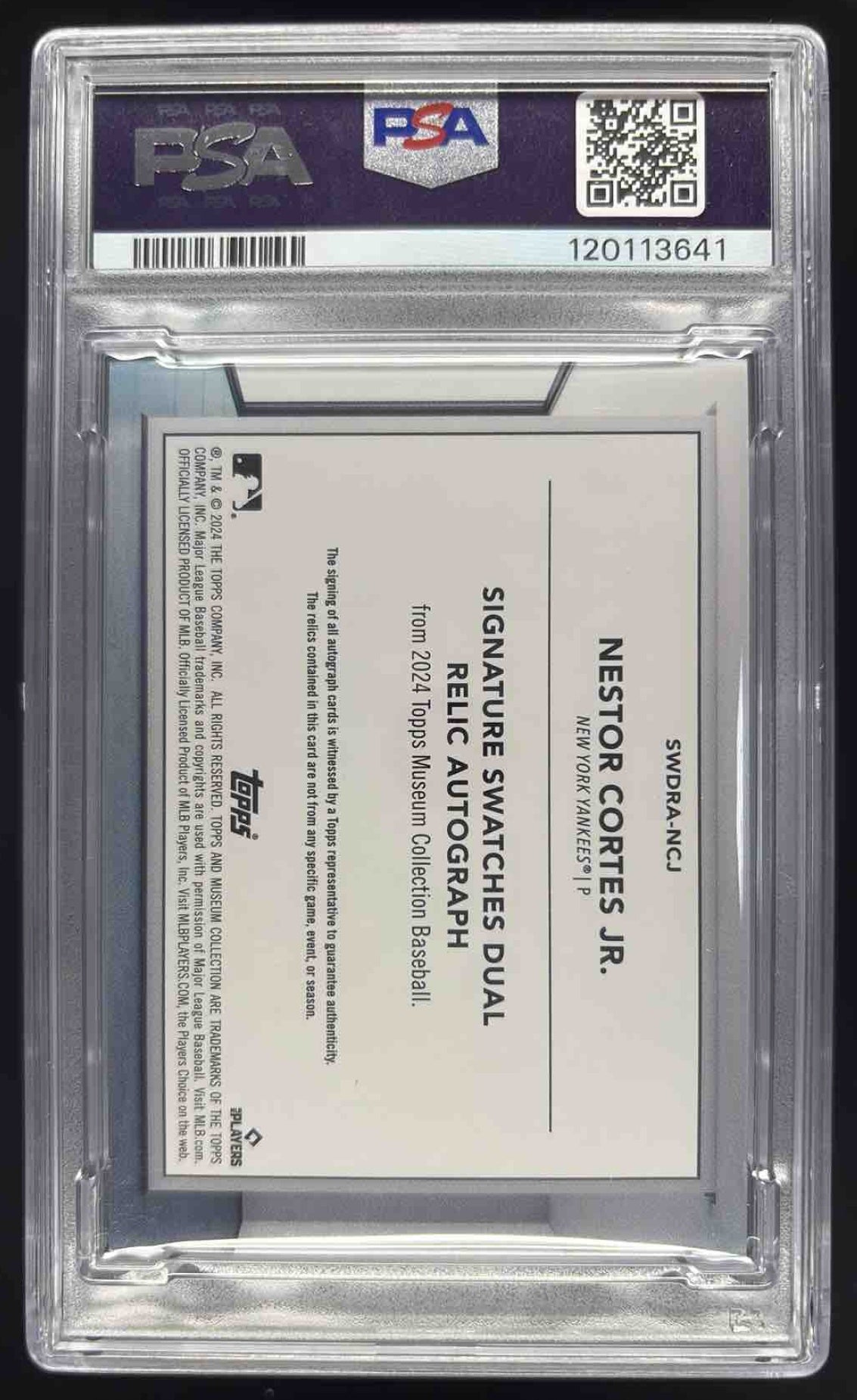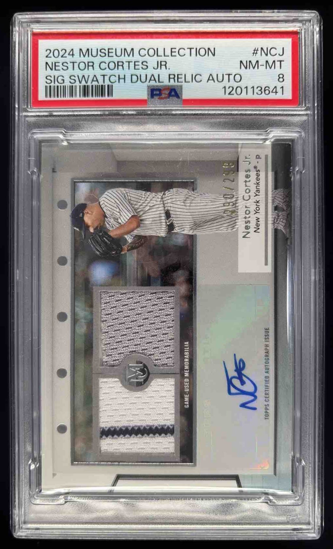 2024 Museum Collection Swatches Dual Relic Nestor Cortes Jr. Auto /299 PSA 8