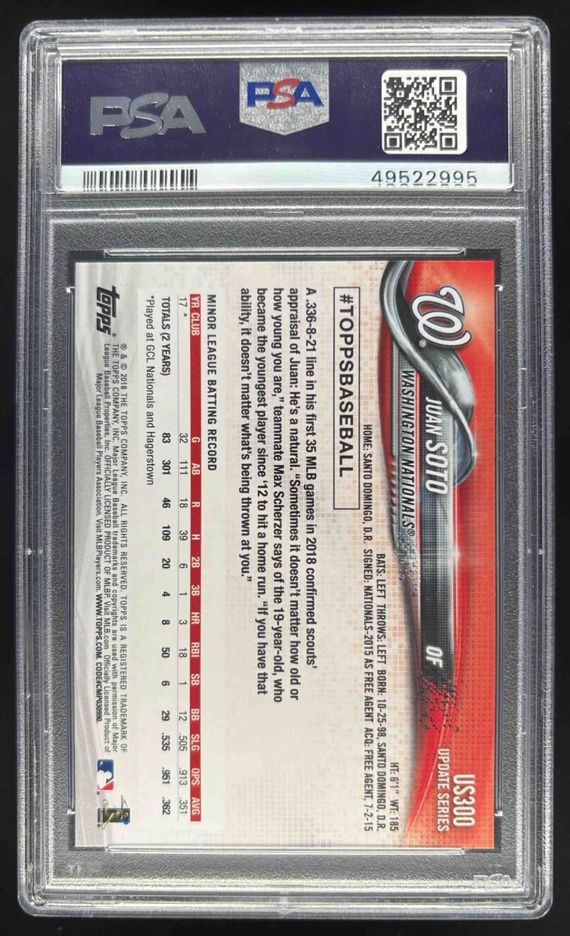 2018 Topps Update #US300a Juan Soto RC All-Star PSA 9