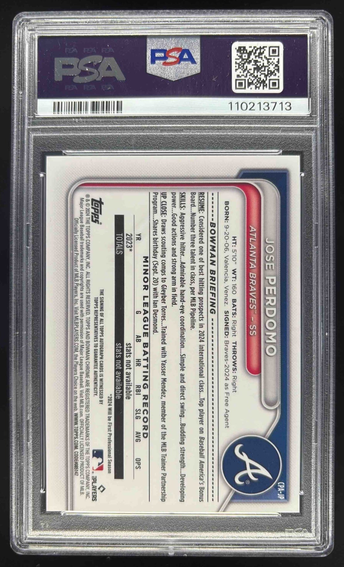 2024 Bowman Chrome HTA Choice Refractor #CPA-JP Jose Perdomo RC Auto /150 PSA 9