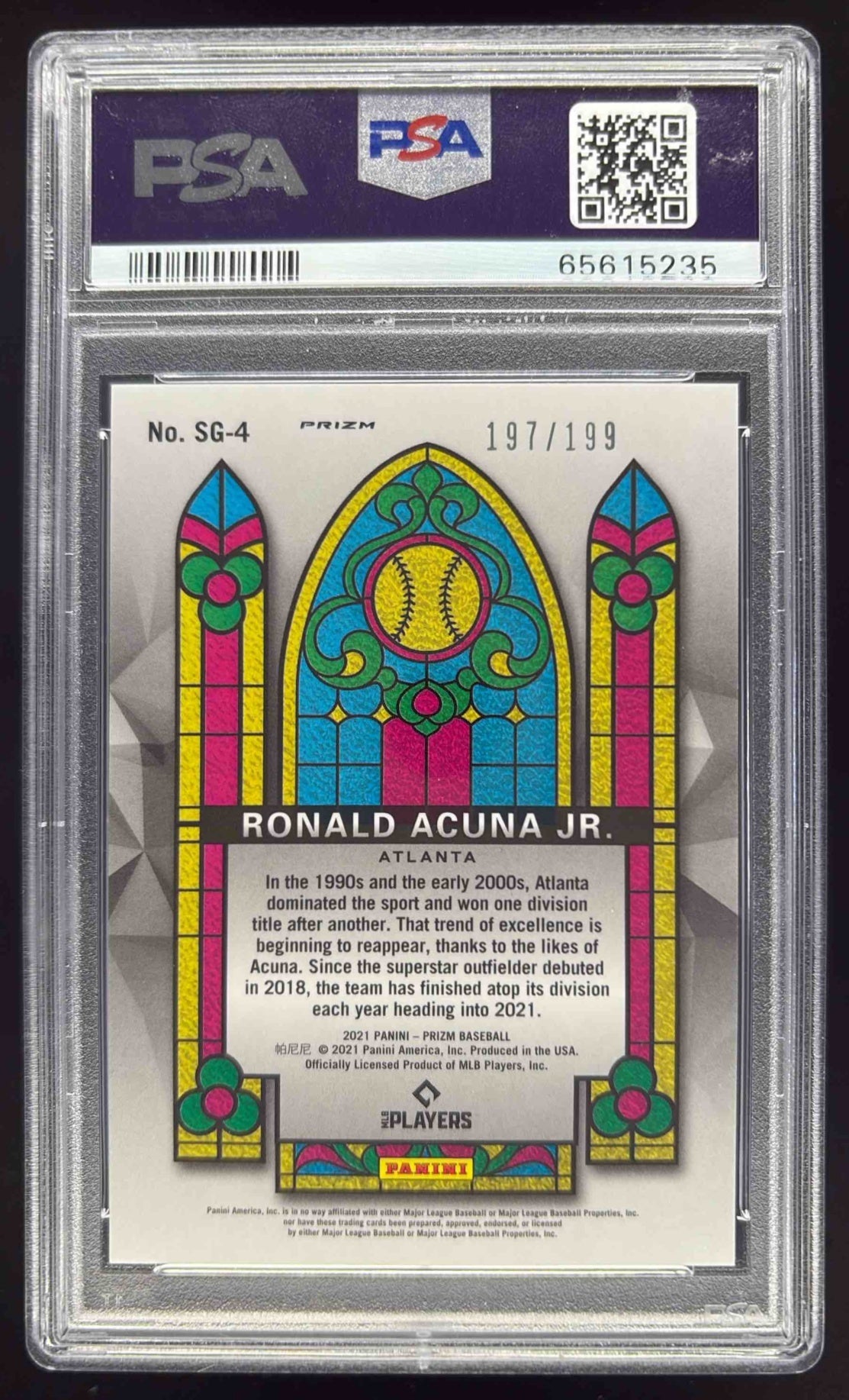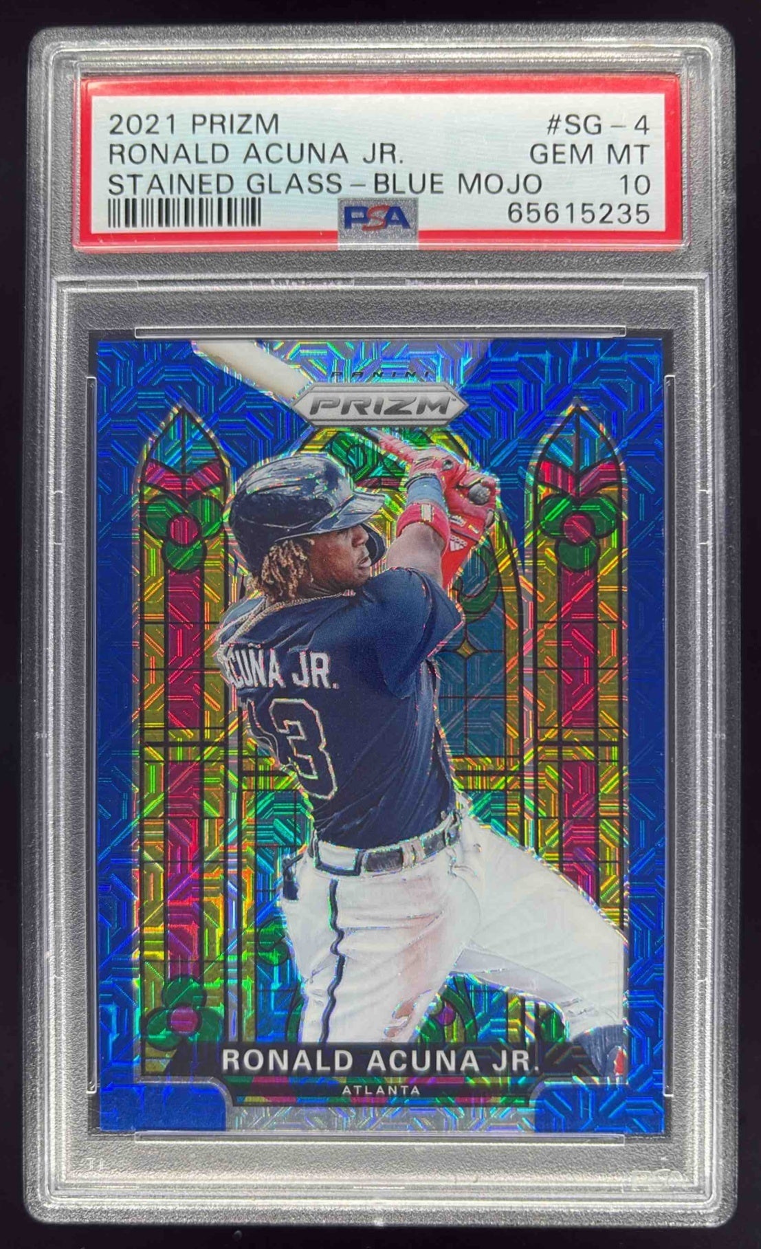 2021 Panini Prizm Stained Glass Blue Mojo #SG-4 Ronald Acuna Jr. /199 PSA 10