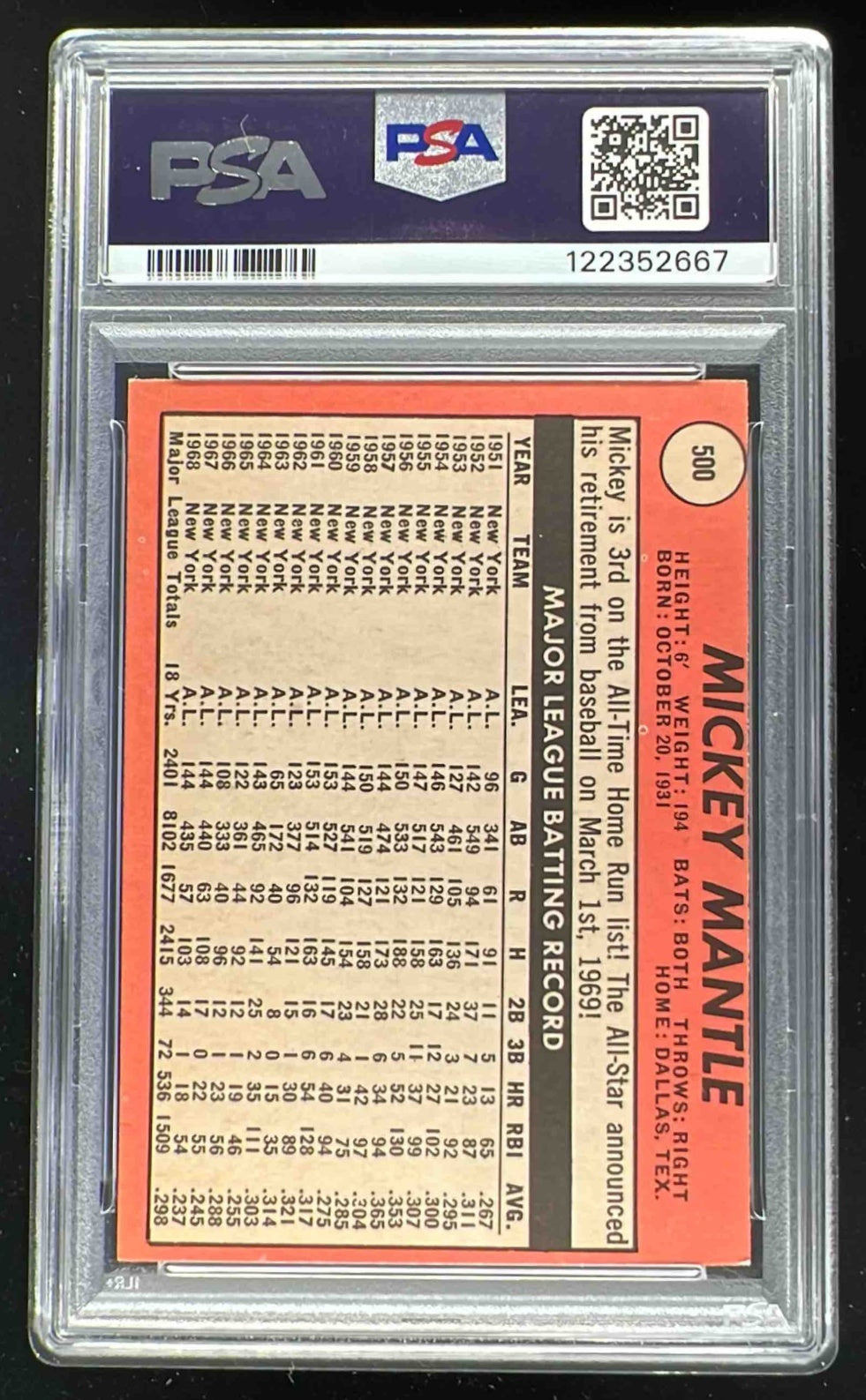 1969 Topps #500 Mickey Mantle Last Name In Yellow PSA 5