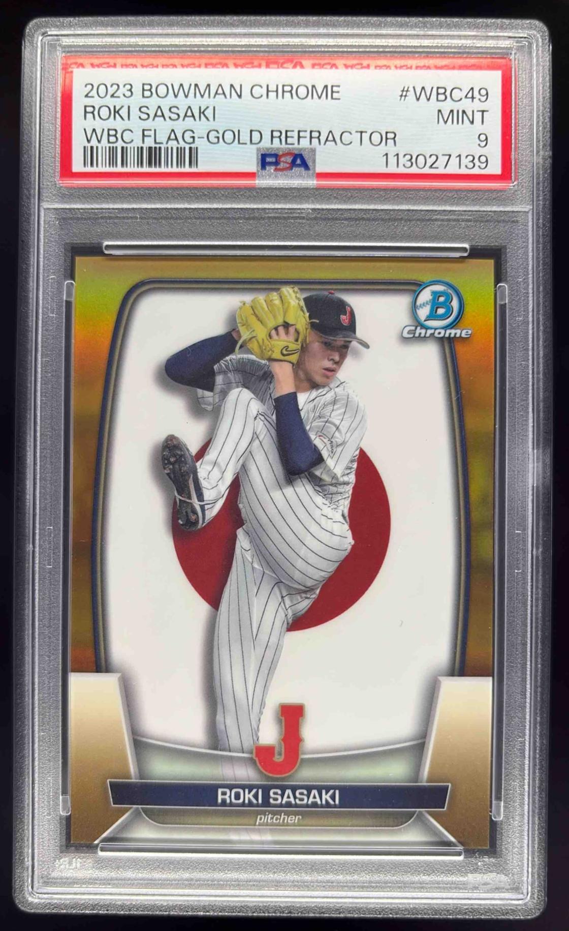 2023 Bowman Chrome WBC Flag Variations Gold Refractor #49 Roki Sasaki /50 PSA 9