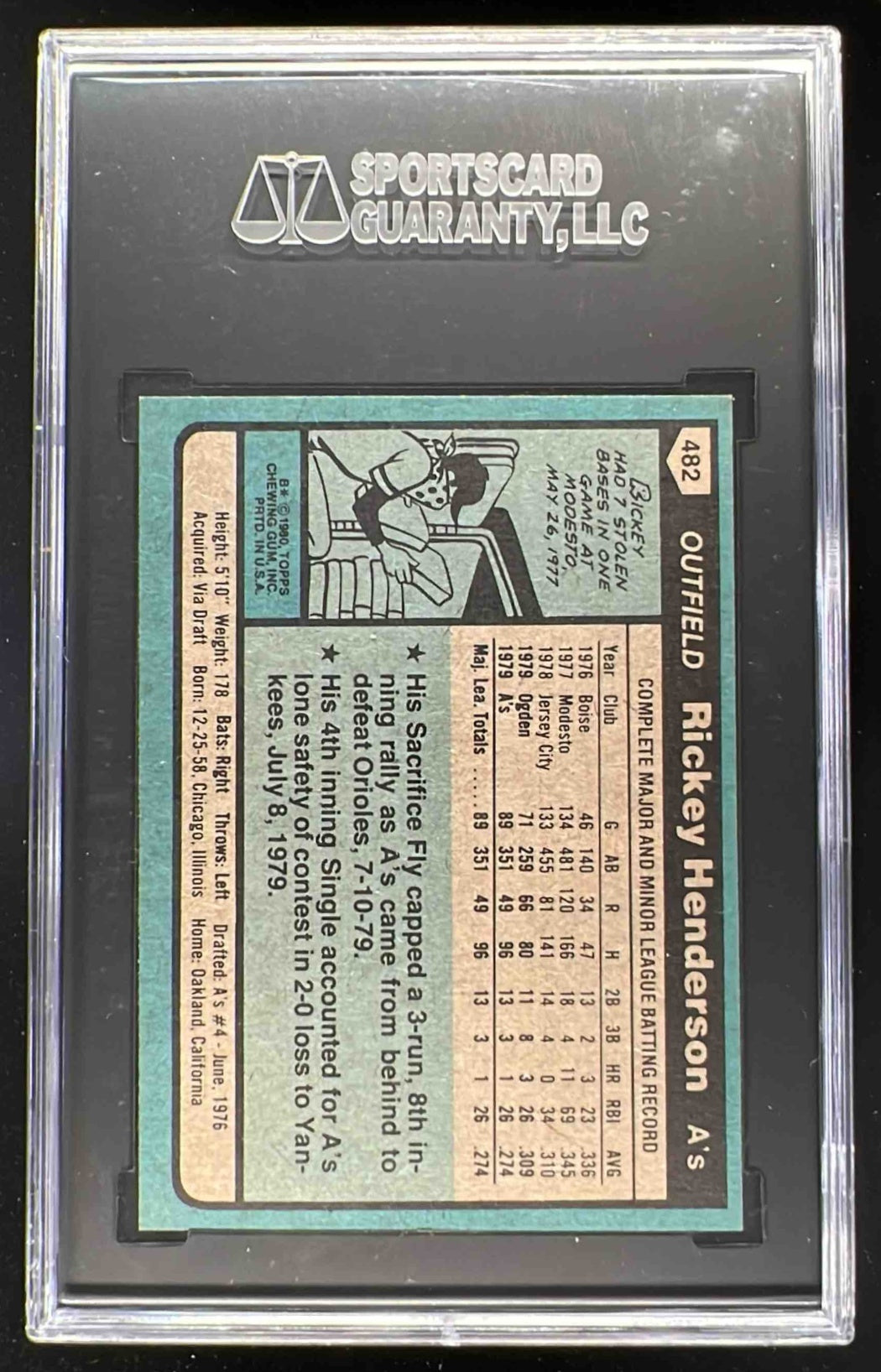 1980 Topps #482 Rickey Henderson RC SGC 8