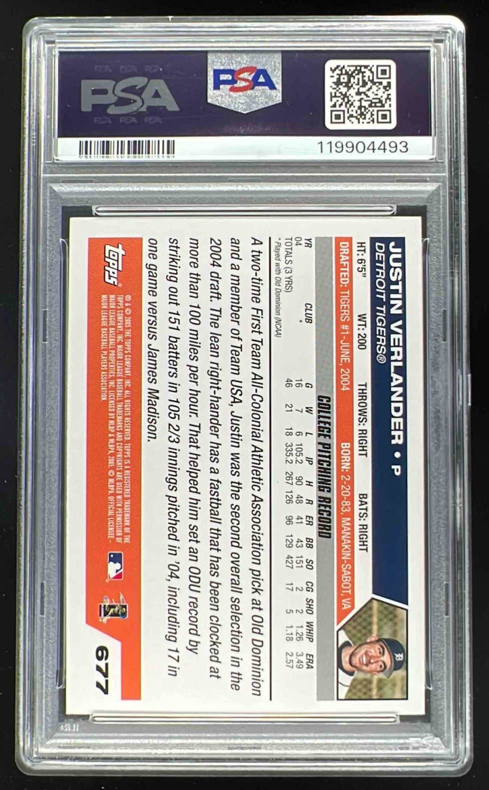 2005 Topps #677 Justin Verlander RC PSA 8