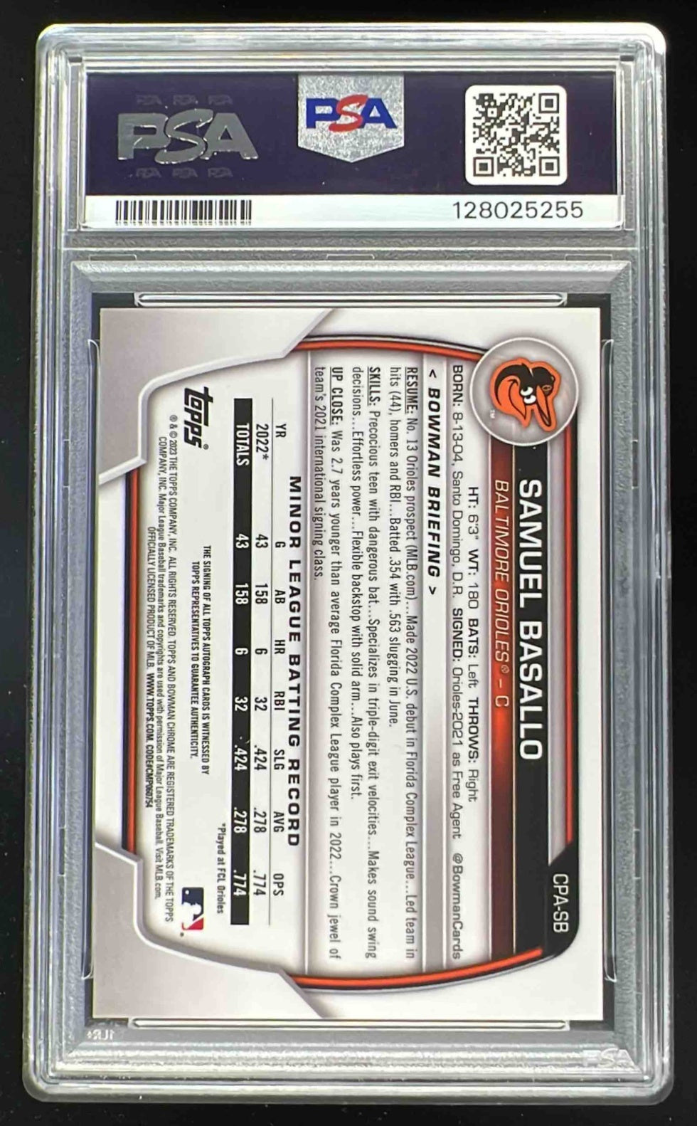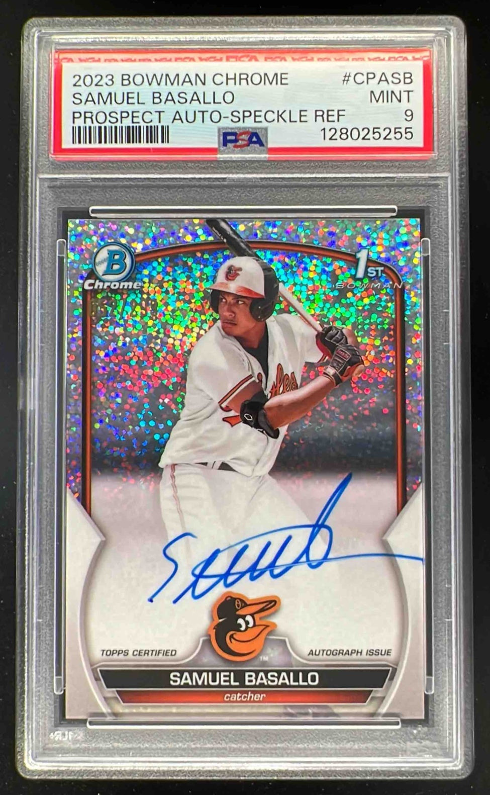 2023 Bowman Chrome Speckle Refractor #CPA-SB Samuel Basallo RC Auto /299 PSA 9