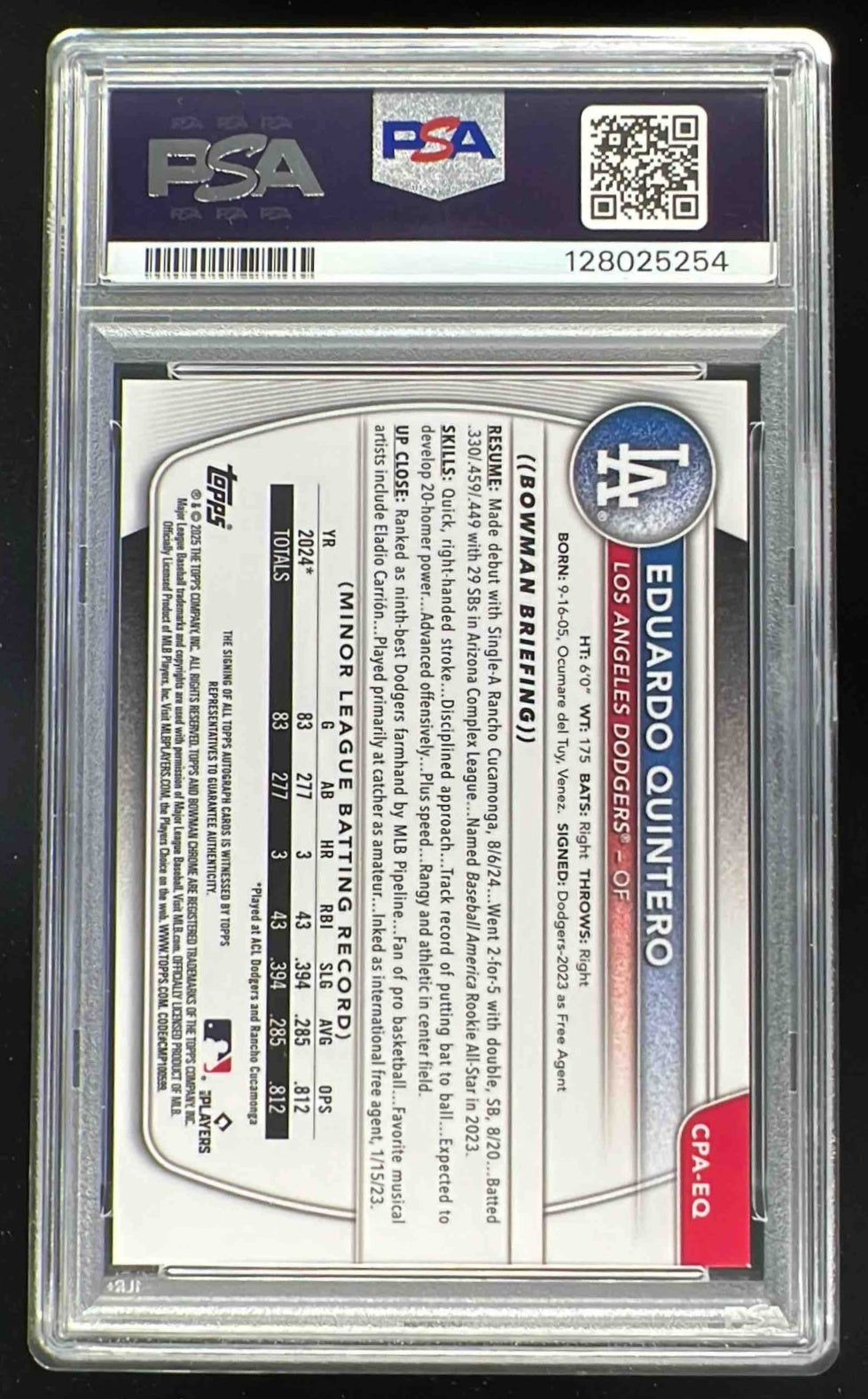 2025 Bowman Chrome Blue Refractor #CPA-EQ Eduardo Quintero RC Auto /150 PSA 9
