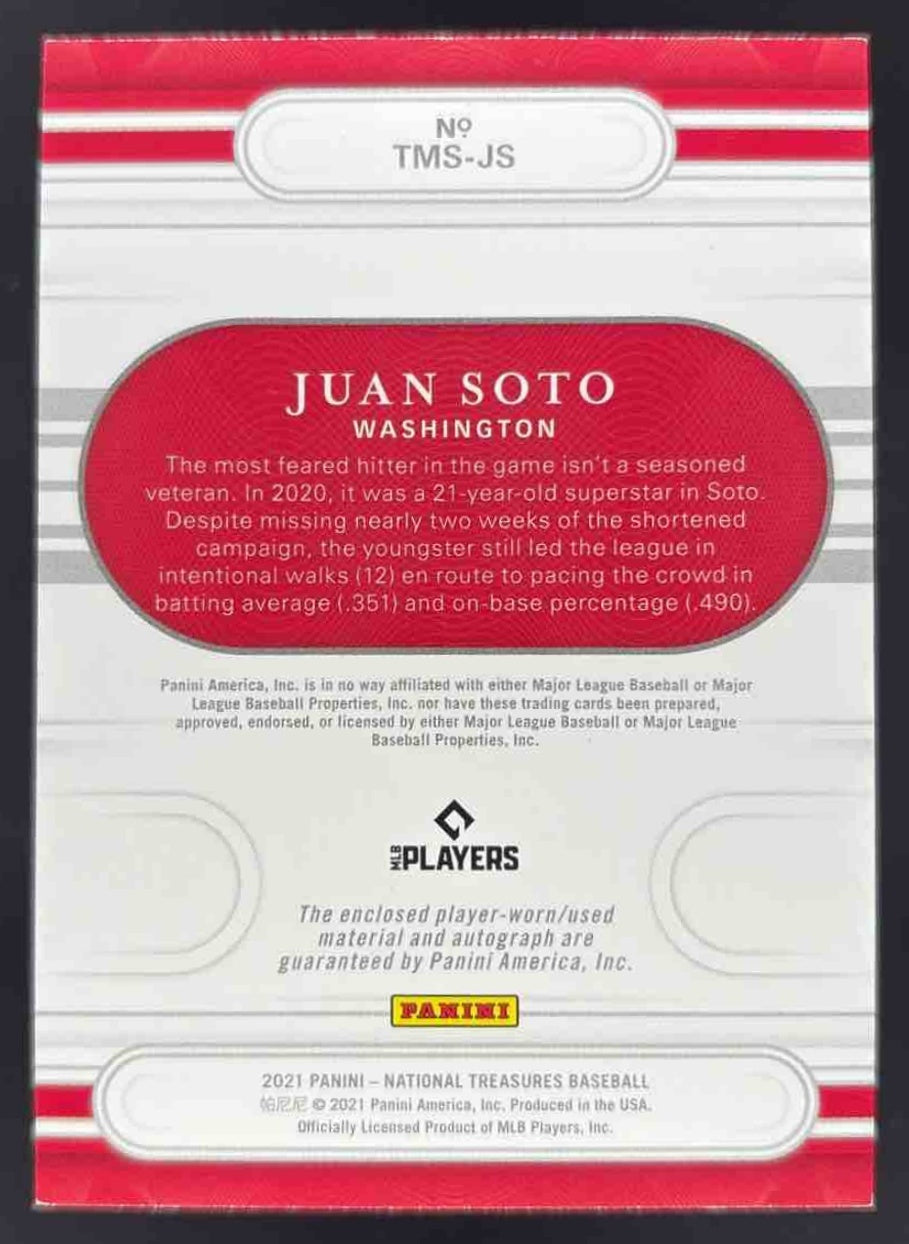 2021 National Treasures Treasured Material Signatures #TMS-JS Juan Soto Auto /25