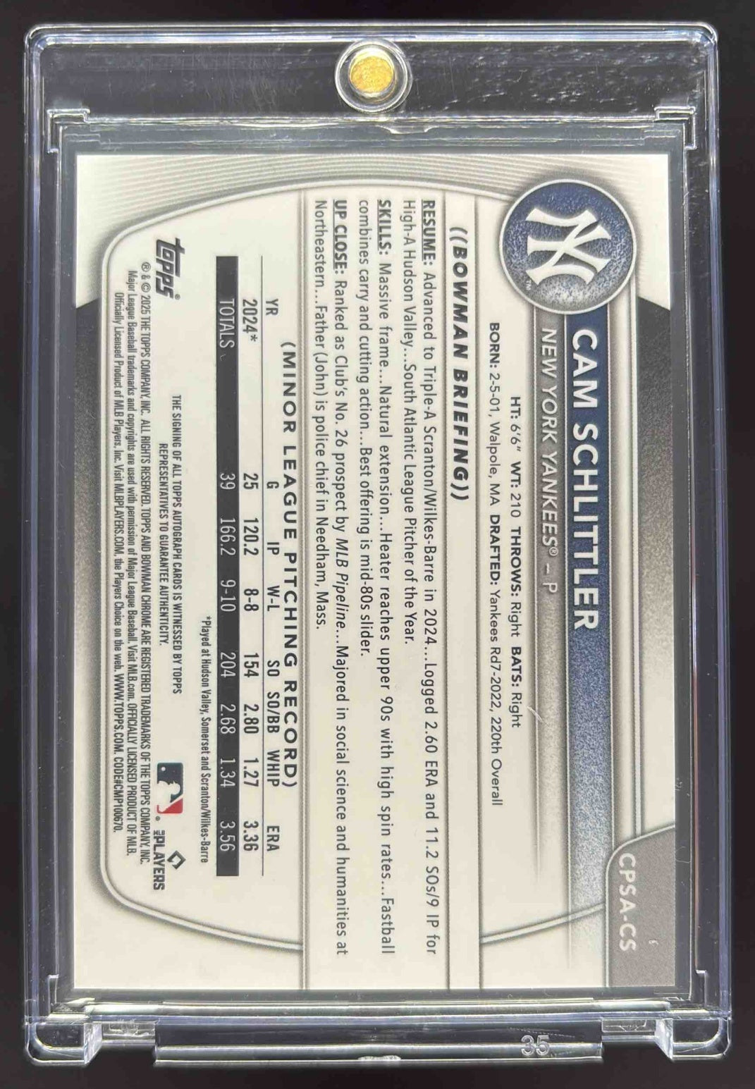 2025 Bowman Chrome Sapphire Gold Refractor #CPSA-CS Cam Schlittler RC Auto /50
