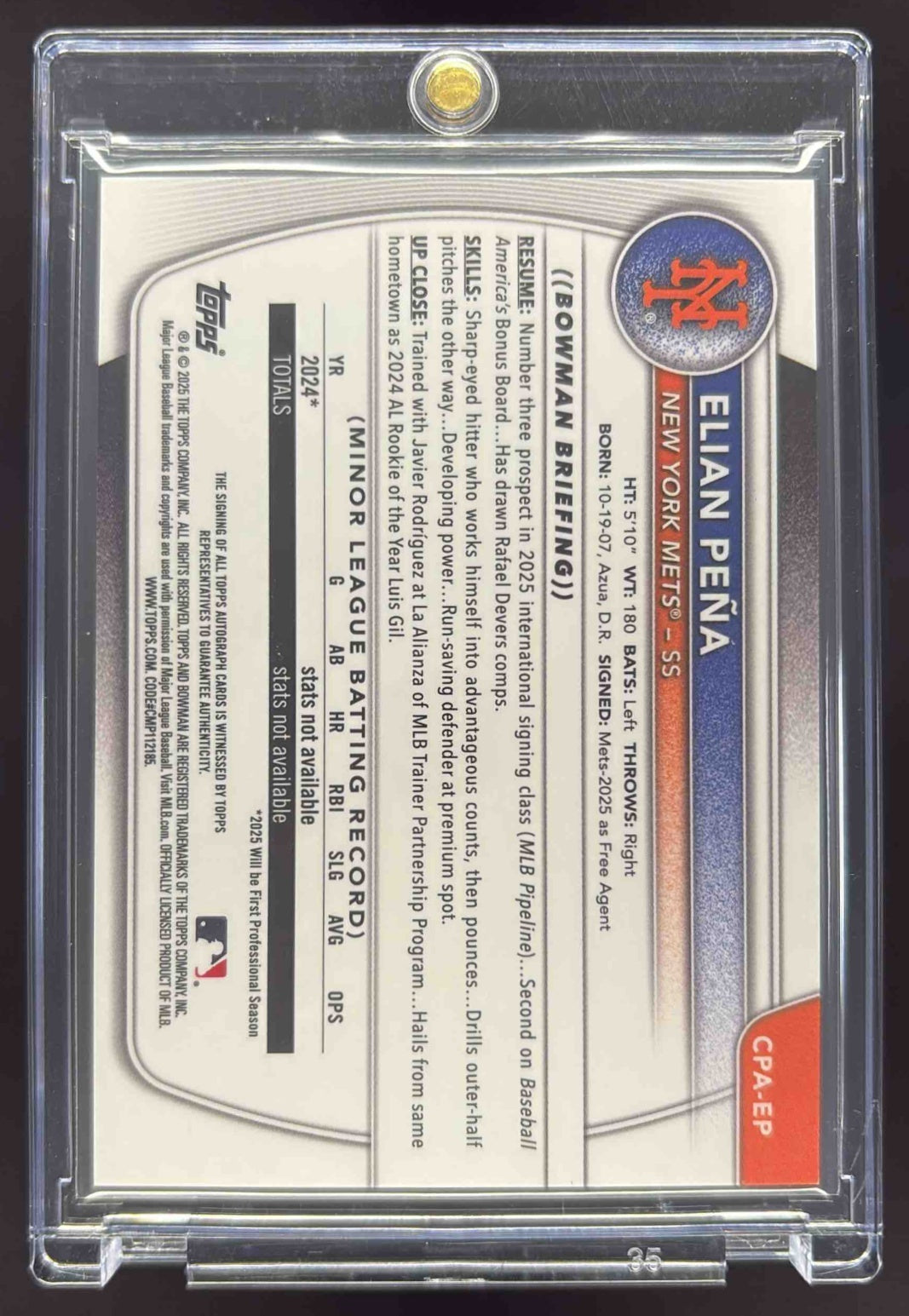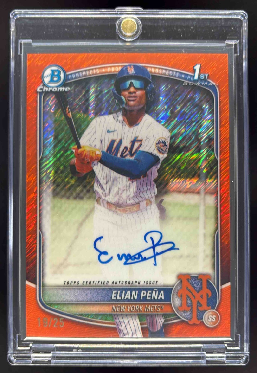 2025 Bowman Chrome Autograph Orange Shimmer Refractor Elian Pena RC Auto /25