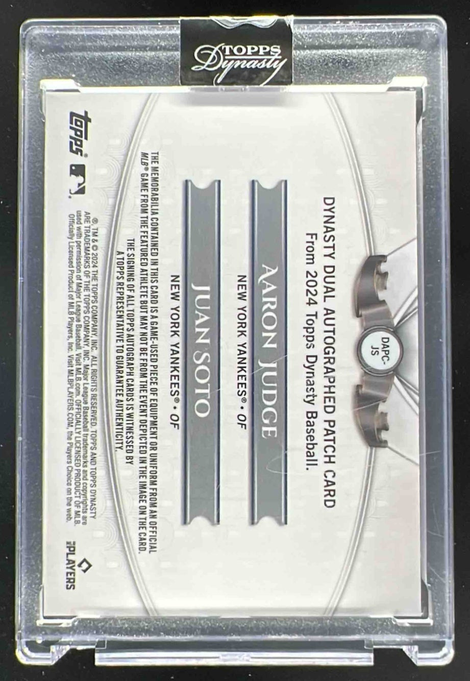 2024 Topps Dynasty Dual Autograph Patch #DAPC-JS Juan Soto Aaron Judge Auto /5