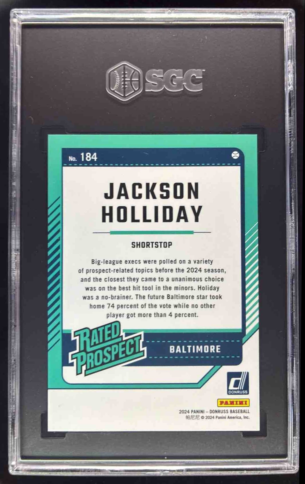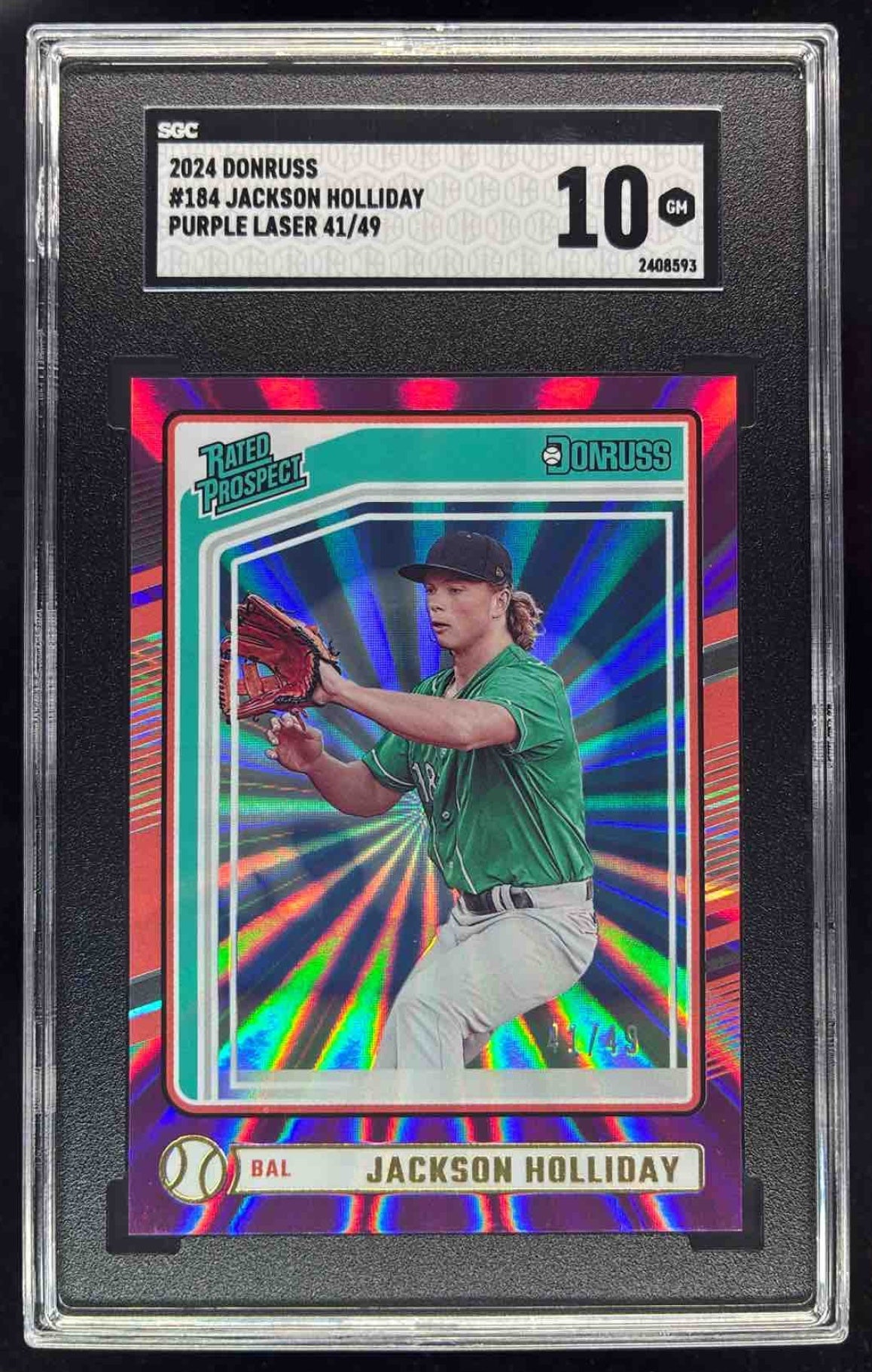 2024 Panini Donruss Purple Laser #184 Jackson Holliday Rated Prospect /49 SGC 10