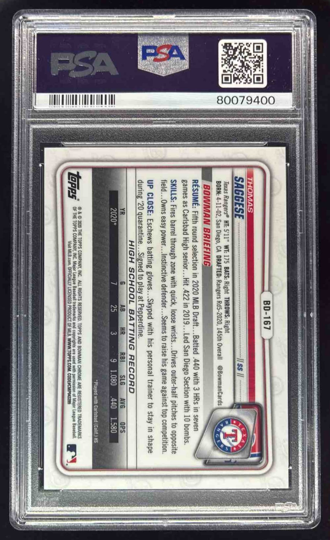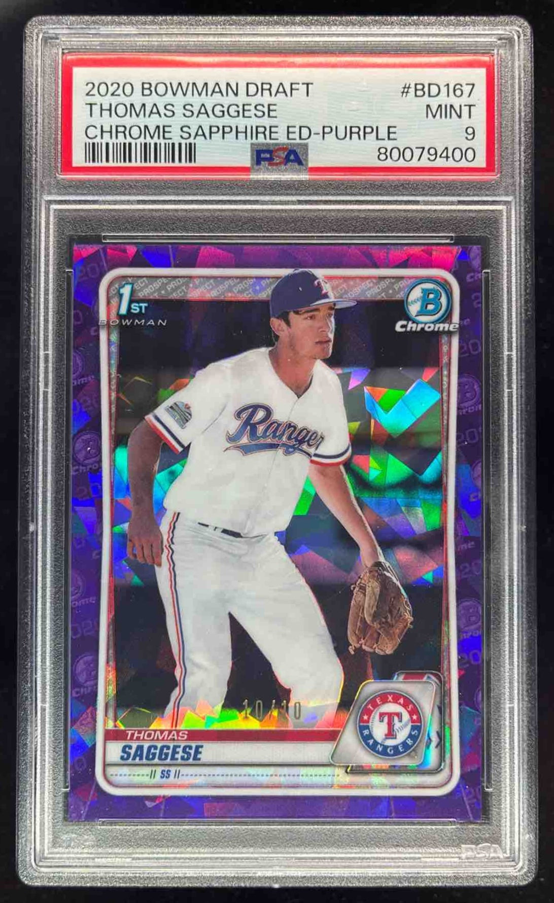 2020 Bowman Draft Sapphire Chrome Purple #BD-167 Thomas Saggese RC /10 PSA 9