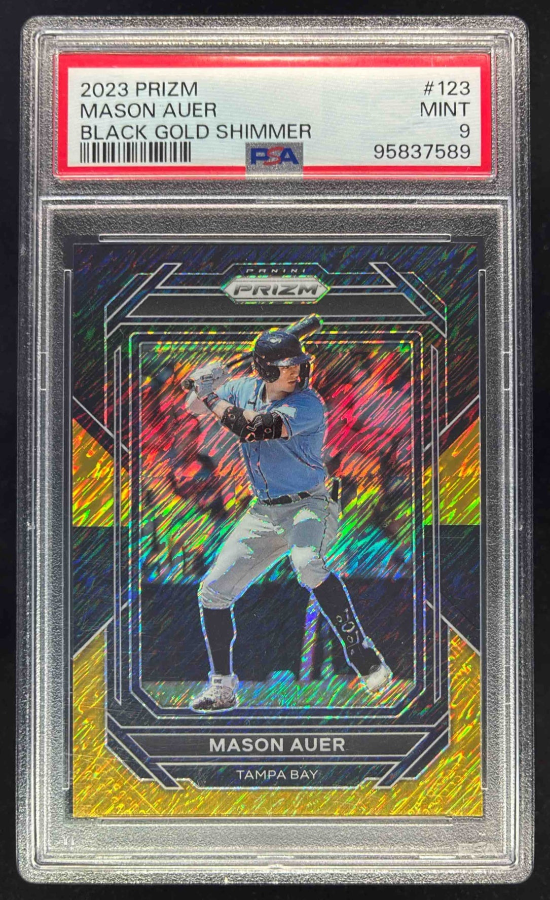 2023 Panini Prizm Black Gold Shimmer #123 Mason Auer /5 PSA 9