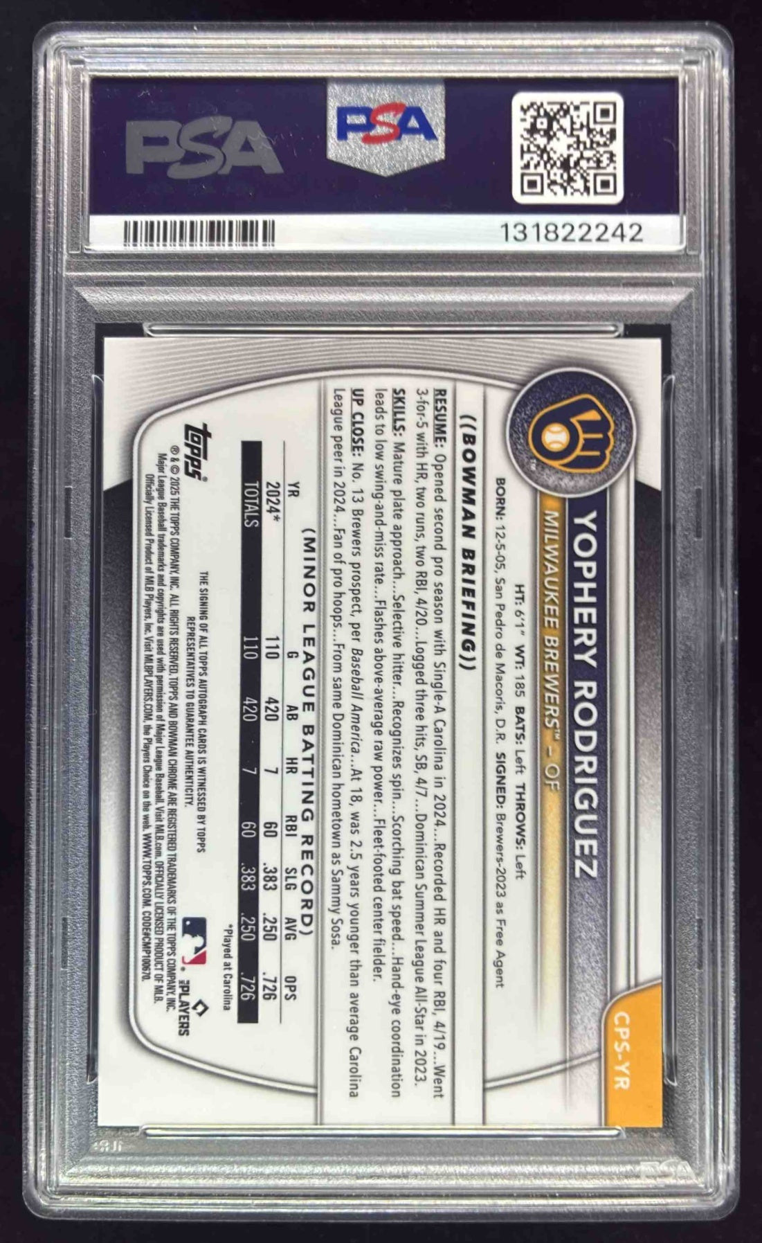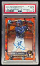 2025 Bowman Sapphire Chrome Orange Refractors #YR Yophery Rodriguez RC /25 PSA 9