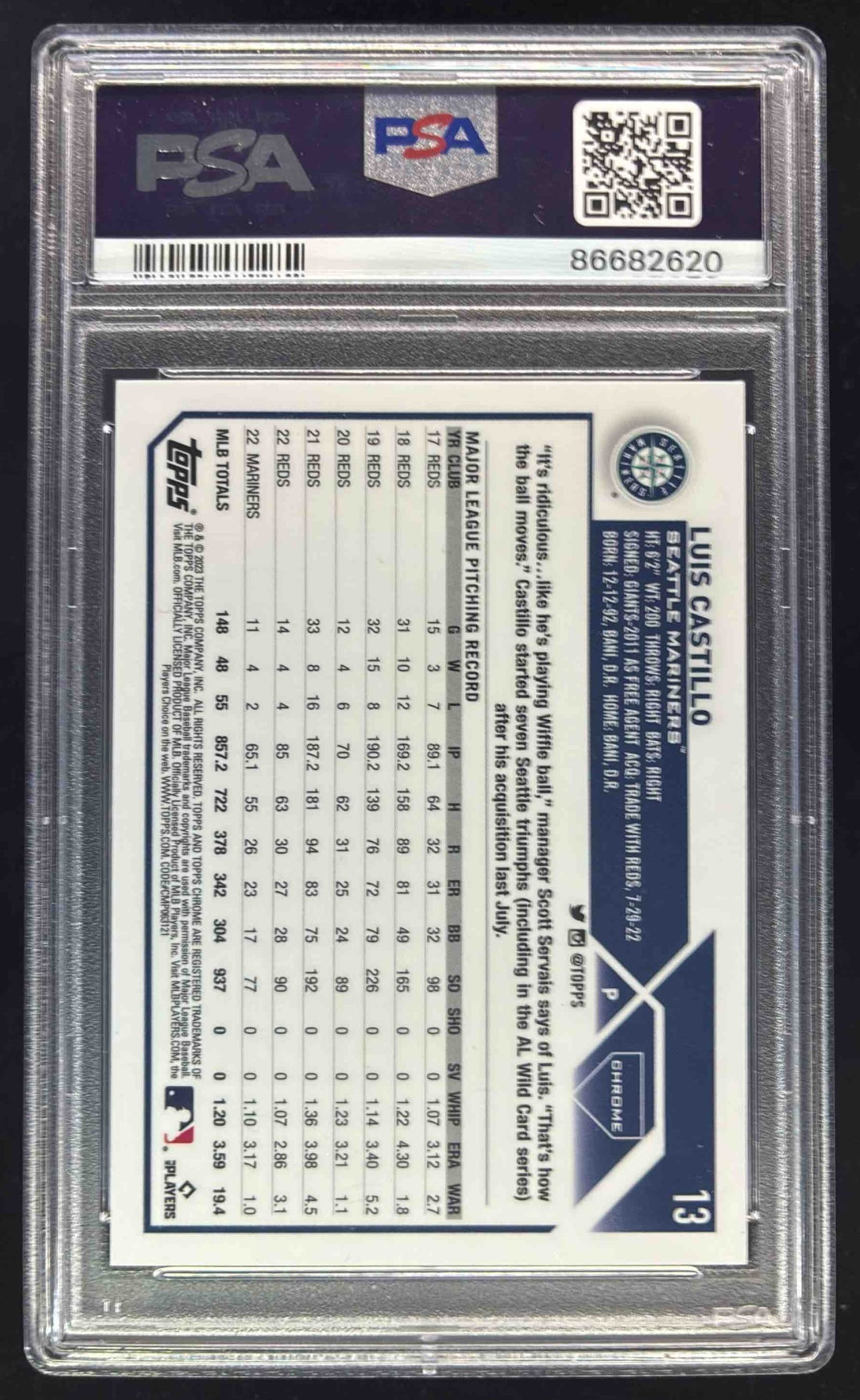 2023 Topps Chrome Orange Refractor #13 Luis Castillo RC /25 PSA 10