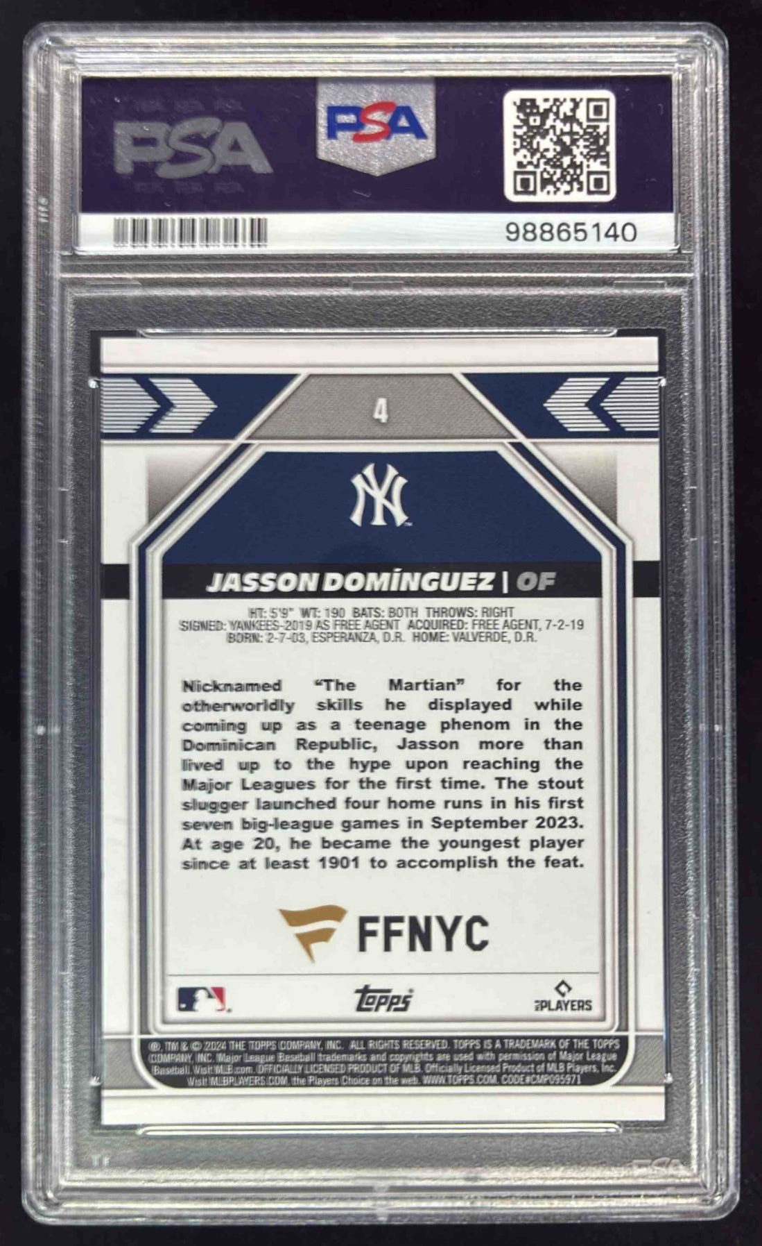 2024 Topps Fanatics Fest Gold #4 Jasson Dominguez /50 PSA 10