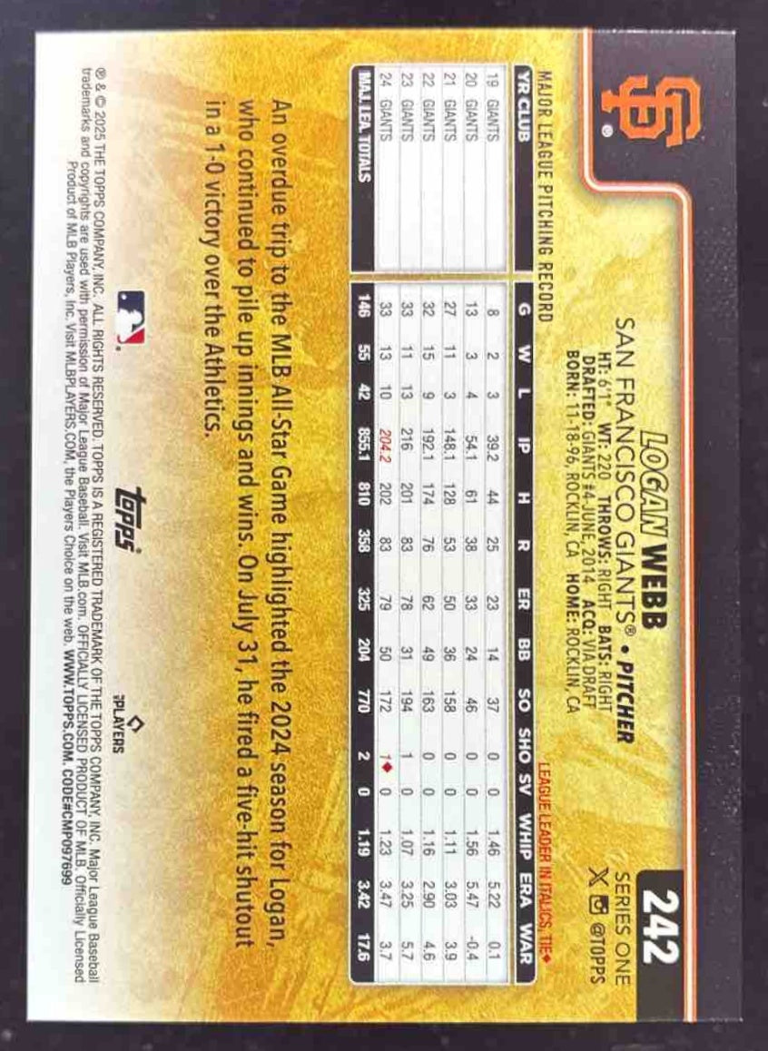 2025 Topps Golden Mirror Variation SSP #242 Logan Webb