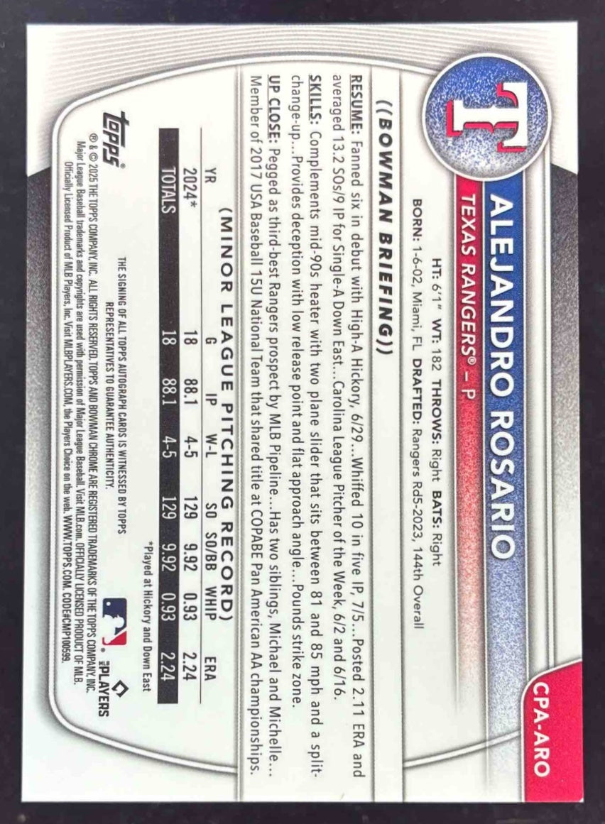 2025 Bowman Chrome Green Refractor #CPA-ARO Alejandro Rosario Auto /99