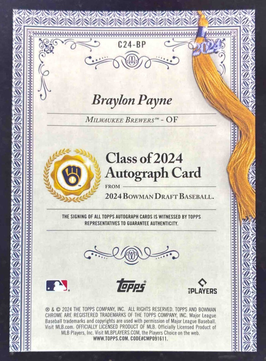 2024 Bowman Draft Class of 2024 Autographs #C24-BP Braylon Payne Auto /250