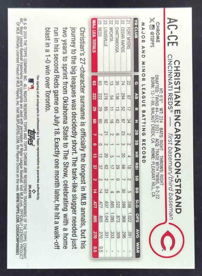 2024 Topps Chrome Orange Wave #AC-CE Christian Encarnacion-Strand RC Auto /25
