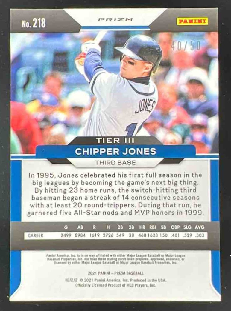 2021 Panini Prizm Snake Skin #218 Chipper Jones /50