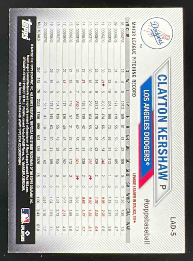 2021 Topps National Baseball Card Day Los Angeles Dodgers #LAD-5 Clayton Kershaw