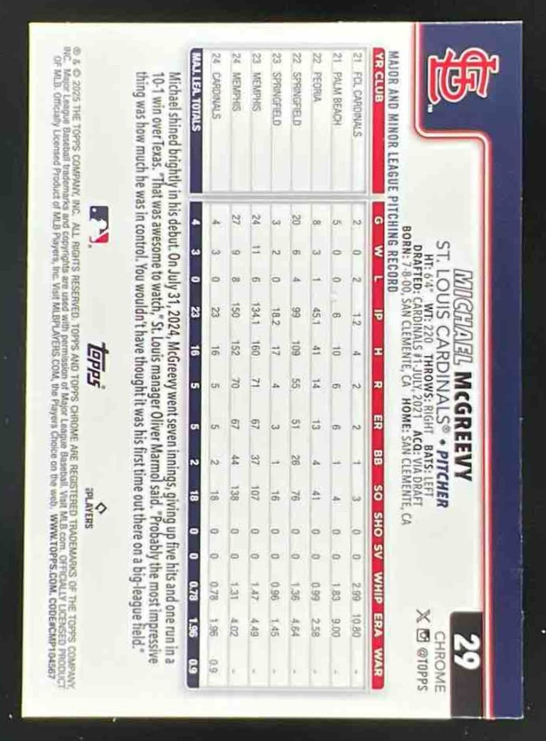 2025 Topps Chrome Lightboard Logo Variation #29 Michael McGreevy RC