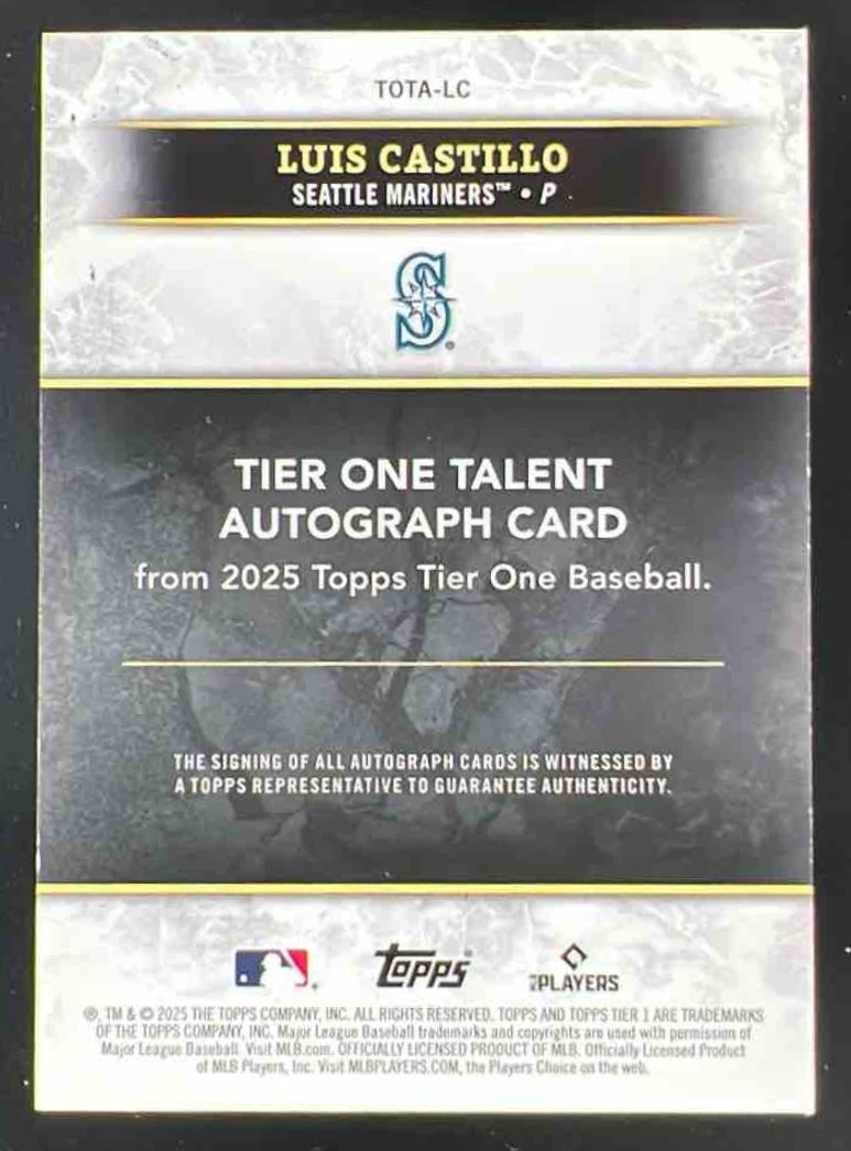 2025 Topps Tier One Talent Autograph Blue #TOTA-LC Luis Castillo Auto /99