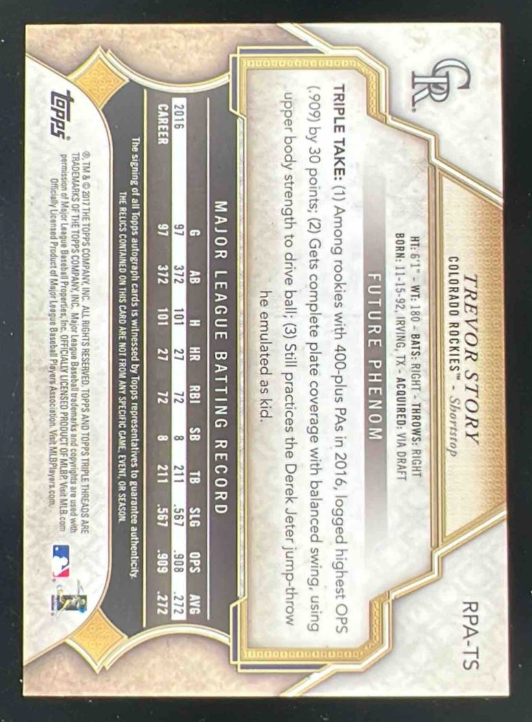 2017 Topps Triple Threads Rookie and Future Phenom Relics Trevor Story Auto /99