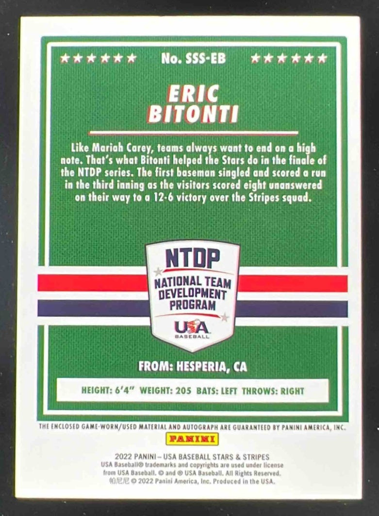 2022 USA Baseball Stars & Stripes Prime #SSS-EB Eric Bitonti Auto /25