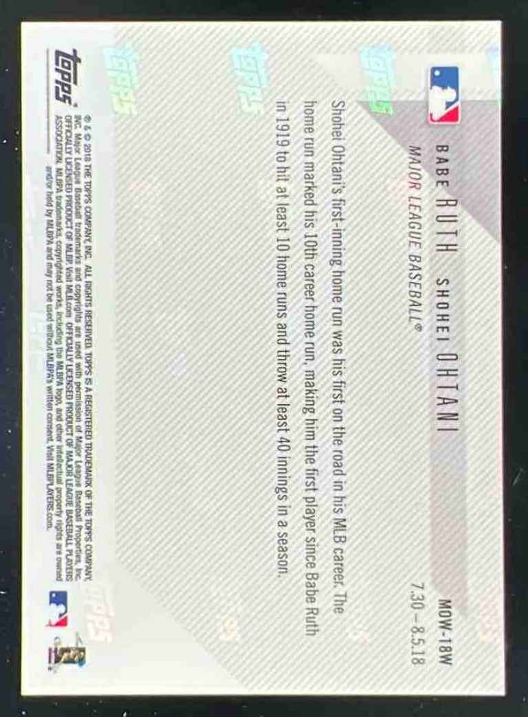 2018 Topps Now Moment of the Week Gold Winner #MOW18W Babe Ruth Shohei Ohtani RC