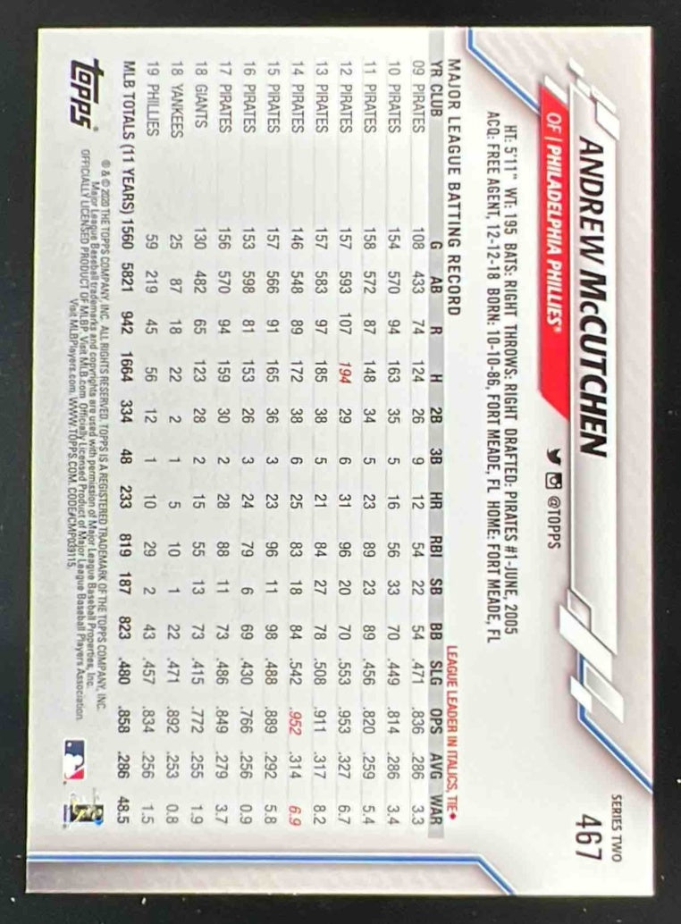 2020 Topps On-Demand Set 23: Topps Mini #467b Andrew McCutchen