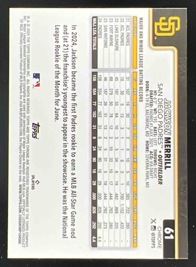 2025 Topps Chrome Image Variation #61 Jackson Merrill
