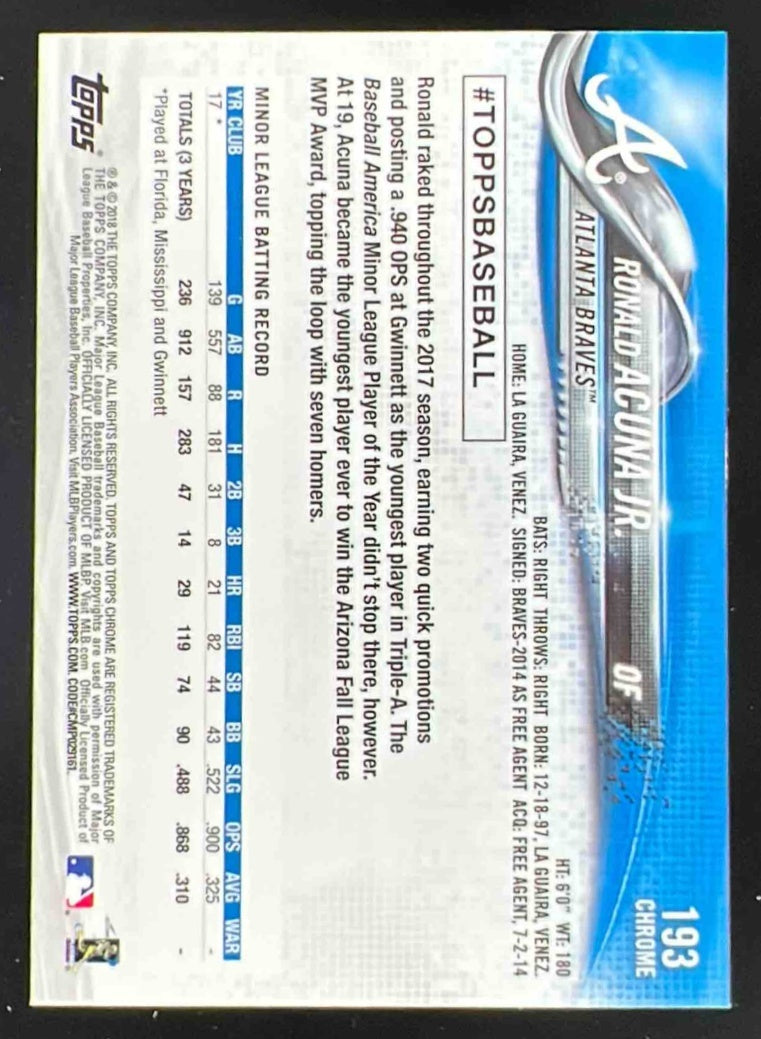 2018 Topps Chrome #193 Ronald Acuna Jr. RC